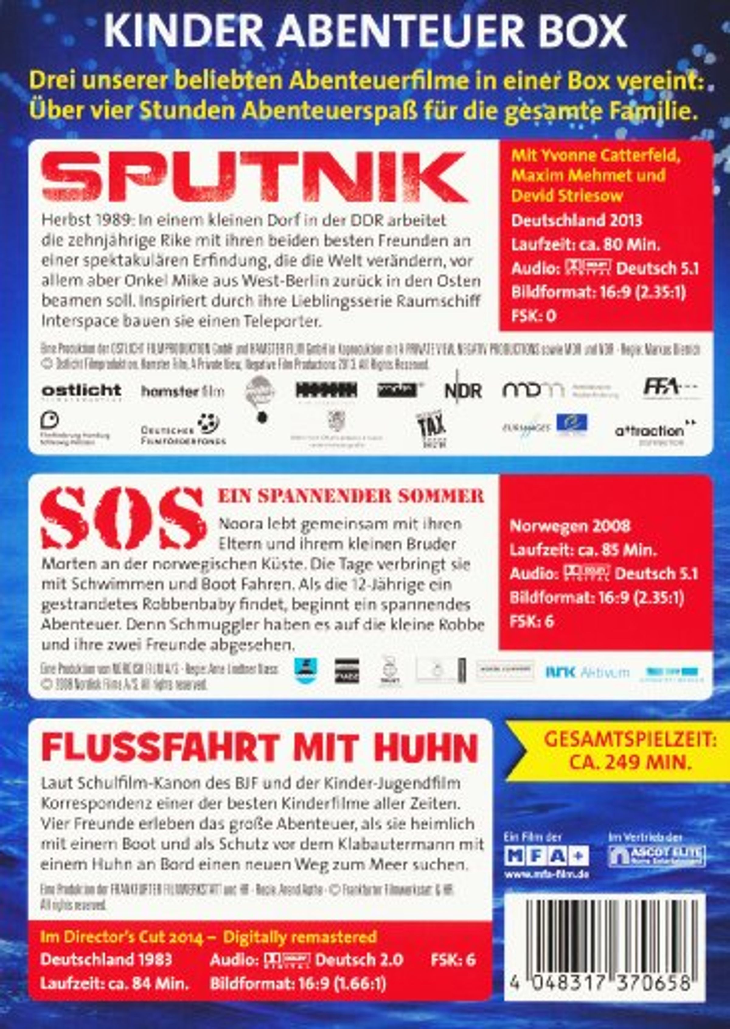 3 DVDs Kinder Abenteuer Box. Sputnik. SOS Ein spannender Sommer. Flussfahrt mit Huhn. Ein Kind mit Helm, ein Gesicht., 3 DVDs