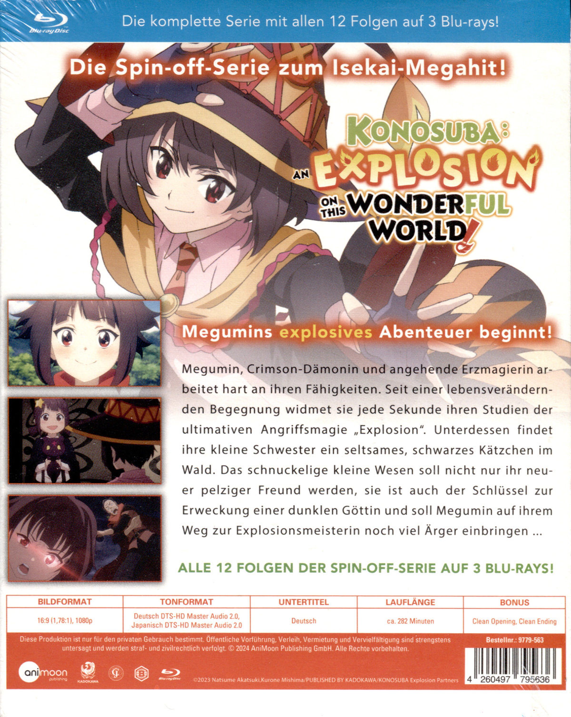 Ein Jahr bevor eine gewisse nutzlose Göttin und ein außergewöhnlicher NEET auf den Plan treten, feilt Megumin, das 'größte Genie des Crimson Dämonen Clans', hart an ihrer Magie. Seit einer lebensverändernden Begegnung in ihrer Kindheit widmet die junge Zauberin jede wache Minute dem Streben nach der ultimativen Angriffsmagie: der Explosionsmagie.