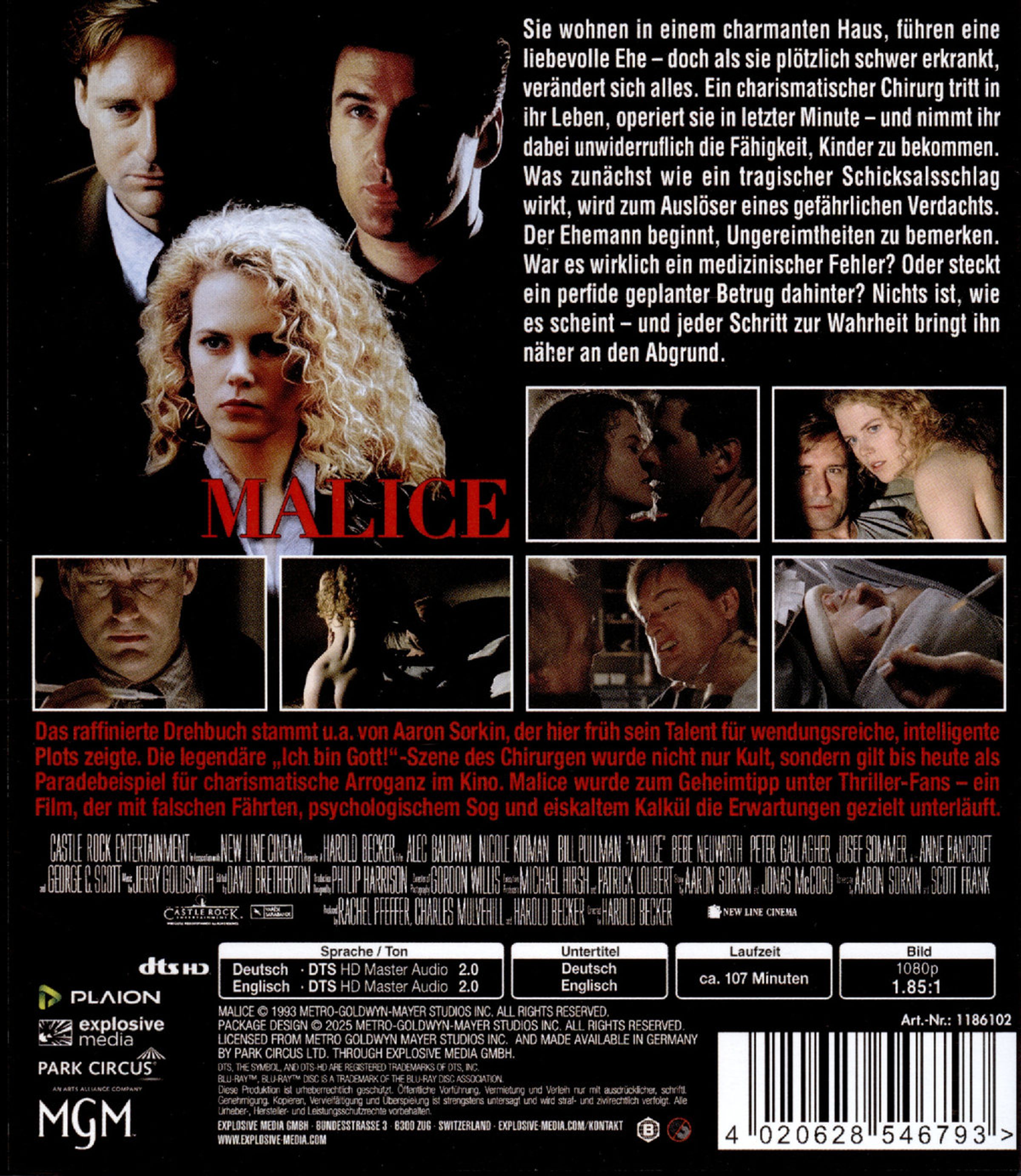 »Malice - Eine Intrige« ist ein hochspannender Psychothriller, der mit geschicktem Storytelling, brillanten Wendungen und starken Schauspielern überzeugt. Nicole Kidman liefert eine faszinierende Performance zwischen Verletzlichkeit und Kaltschnäuzigkeit, während Alec Baldwin als egozentrischer Star-Chirurg eine unvergessliche Präsenz zeigt. Die düstere Atmosphäre, kombiniert mit einem clever konstruierten Drehbuch, sorgt für kontinuierliche Spannung bis zur letzten Minute. Ein intelligenter, stylischer Thriller mit klassischer Hitchcock-Note - fesselnd und überraschend bis zum Schluss.