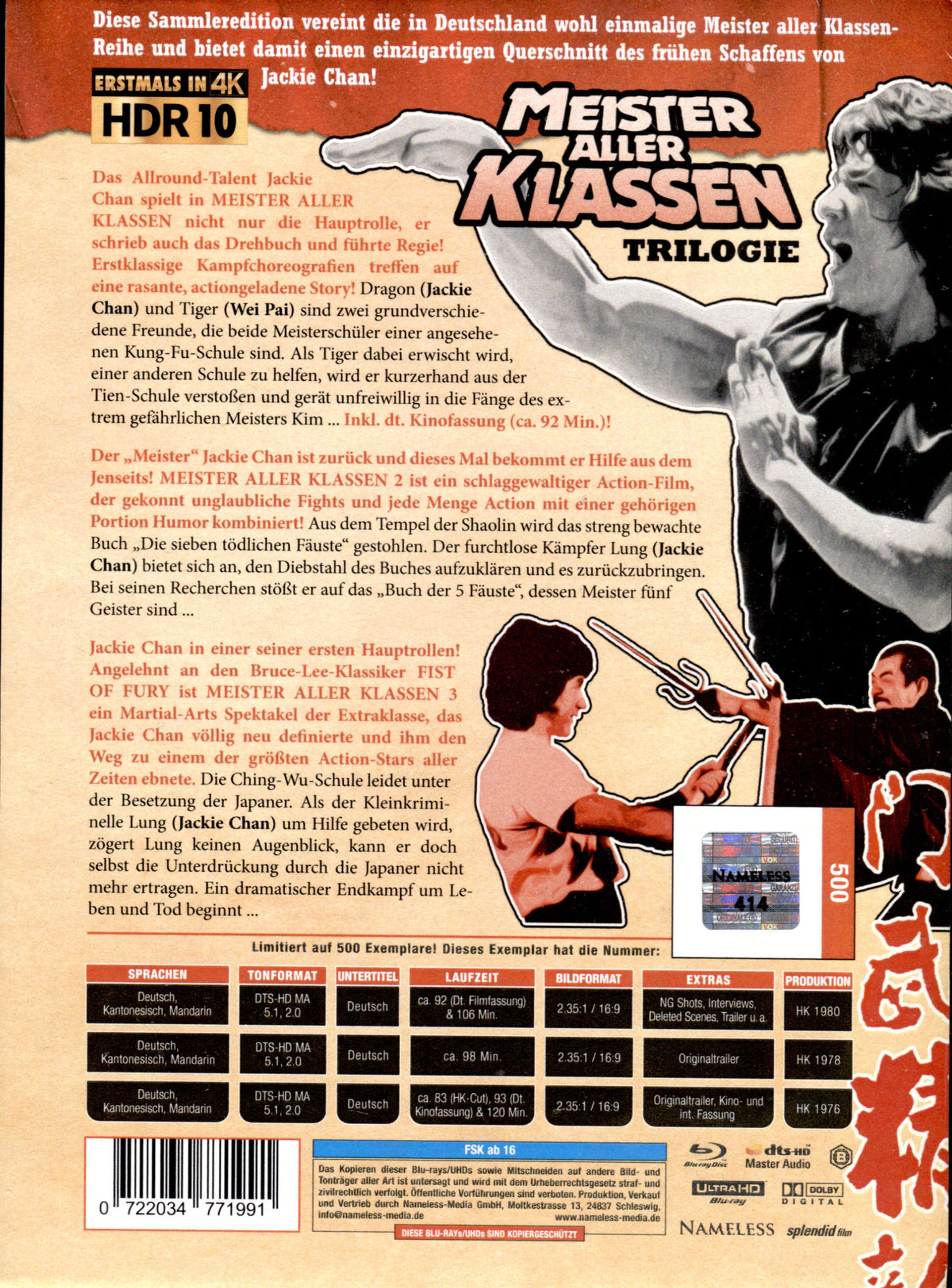 Meister aller Klassen 3 Jackie Chan in einer seiner ersten Hauptrollen! Angelehnt an den Bruce-Lee-Klassiker Fist of Fury ist Meister aller Klassen 3 ein Martial-Arts Spektakel der Extraklasse, das Jackie Chan völlig neu definierte und ihm den Weg zu einem der größten Action-Stars aller Zeiten ebnete. Die Ching-Wu-Schule leidet unter der Besetzung der Japaner. Als der Kleinkriminelle Lung um Hilfe gebeten wird, zögert Lung keinen Augenblick, kann er doch selbst die Unterdrückung durch die Japaner nicht mehr ertragen. Verbissen organisiert er den Widerstand und kämpft unerbittlich gegen seine Feinde. Mit seiner einmaligen Kung- Fu-Kampftechnik schaltet er einen Japaner nach dem anderen aus, bis er schließlich auf ihren Anführer trifft. Ein dramatischer Endkampf um Leben und Tod beginnt ...