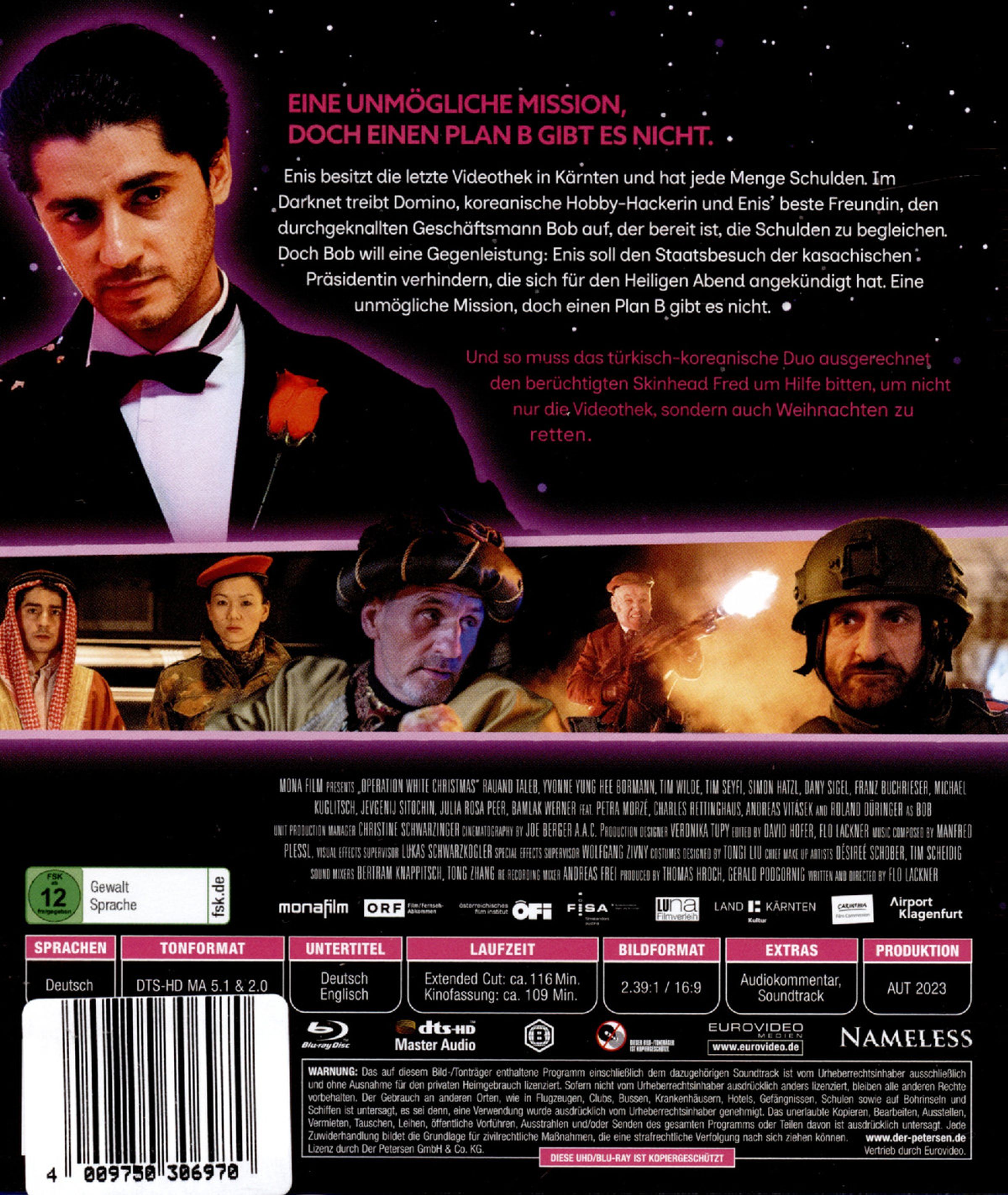 Enis besitzt die letzte Videothek in Kärnten und hat jede Menge Schulden. Im Darknet treibt Domino, koreanische Hobby-Hackerin und Enis’ beste Freundin, den durchgeknallten Geschäftsmann Bob auf, der bereit ist, die Schulden zu begleichen. Doch Bob will eine Gegenleistung: Enis soll den Staatsbesuch der kasachischen Präsidentin verhindern, die sich für den Heiligen Abend angekündigt hat. Eine unmögliche Mission, doch einen Plan B gibt es nicht. Und so muss das türkisch-koreanische Duo ausgerechnet den berüchtigten Skinhead Fred um Hilfe bitten, um nicht nur die Videothek, sondern auch Weihnachten zu retten.