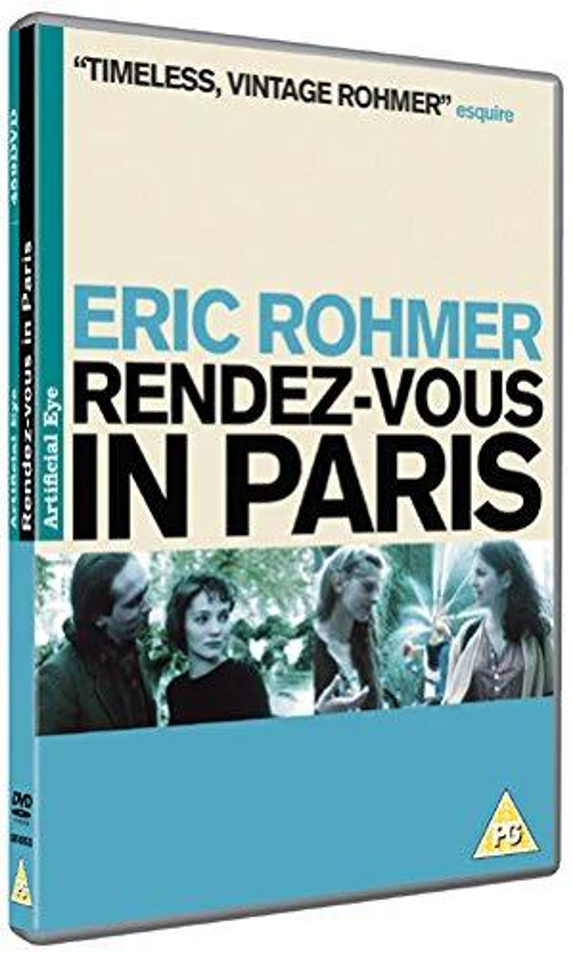 Titel: "Rendez-vous in Paris" von Eric Rohmer. Oben Lob von Esquire. Schwarzweißes Bild von vier Personen am unteren Rand., DVD