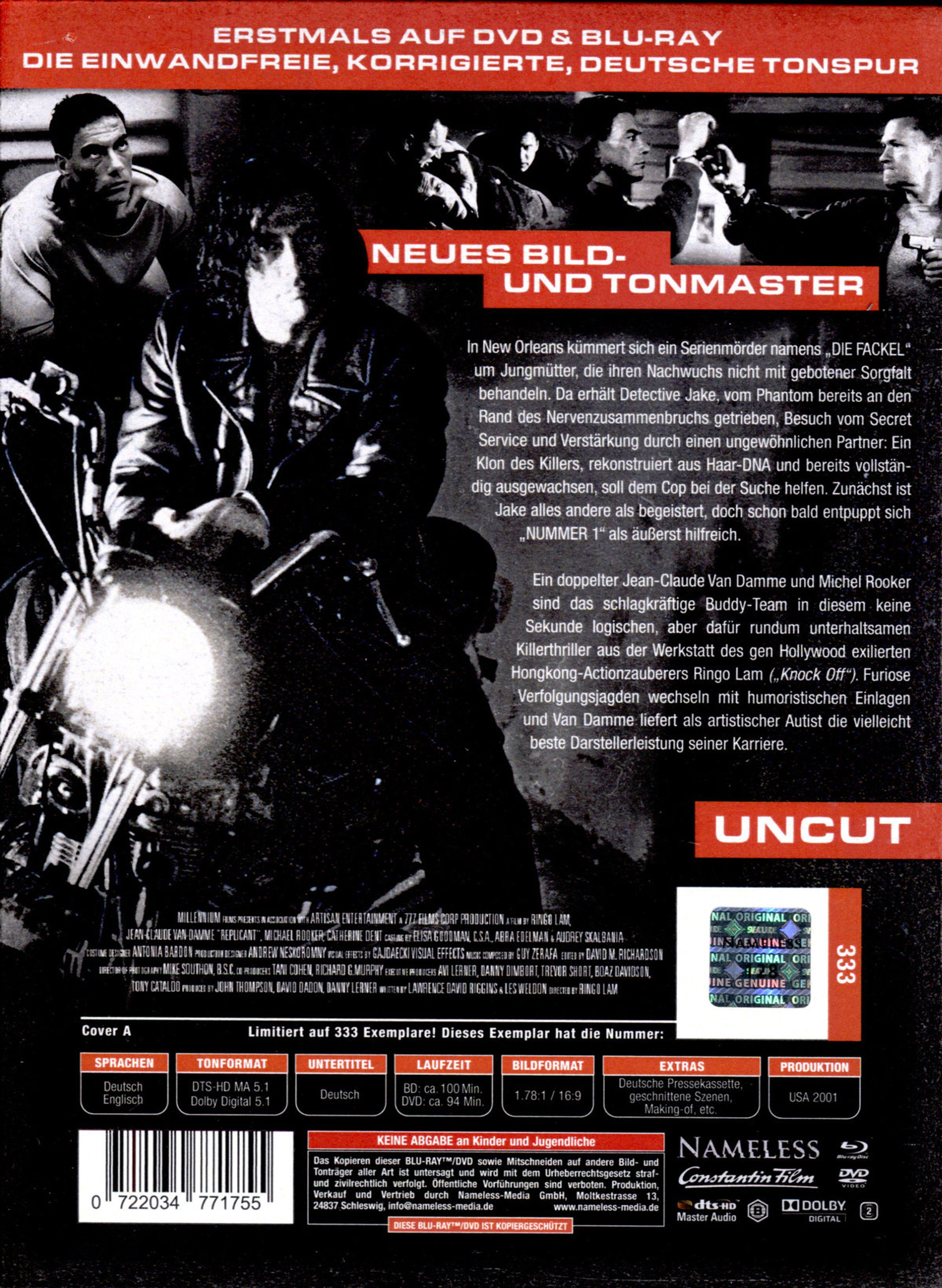 WHAM, BAM, DOUBLE THE VAN DAMME! Nachdem er bereits in GEBALLTE LADUNG in einer Doppelrolle sein Bestes gab, setzt die Action-Ikone hier nochmals einen drauf und zeigt in unglaublichen Kampfszenen, dass nur ein Van Damme einen Van Damme besiegen kann. Bei REPLICANT arbeitete JCVD dabei erneut mit einem legendären Hongkong-Regisseur zusammen: Ringo Lam, der zusammen mit HARTE ZIELE-Regisseur John Woo neue Maßstäbe im Action-Kino setzte. An Van Dammes Seite glänzt Michael Rooker in einer seltenen Hauptrolle.