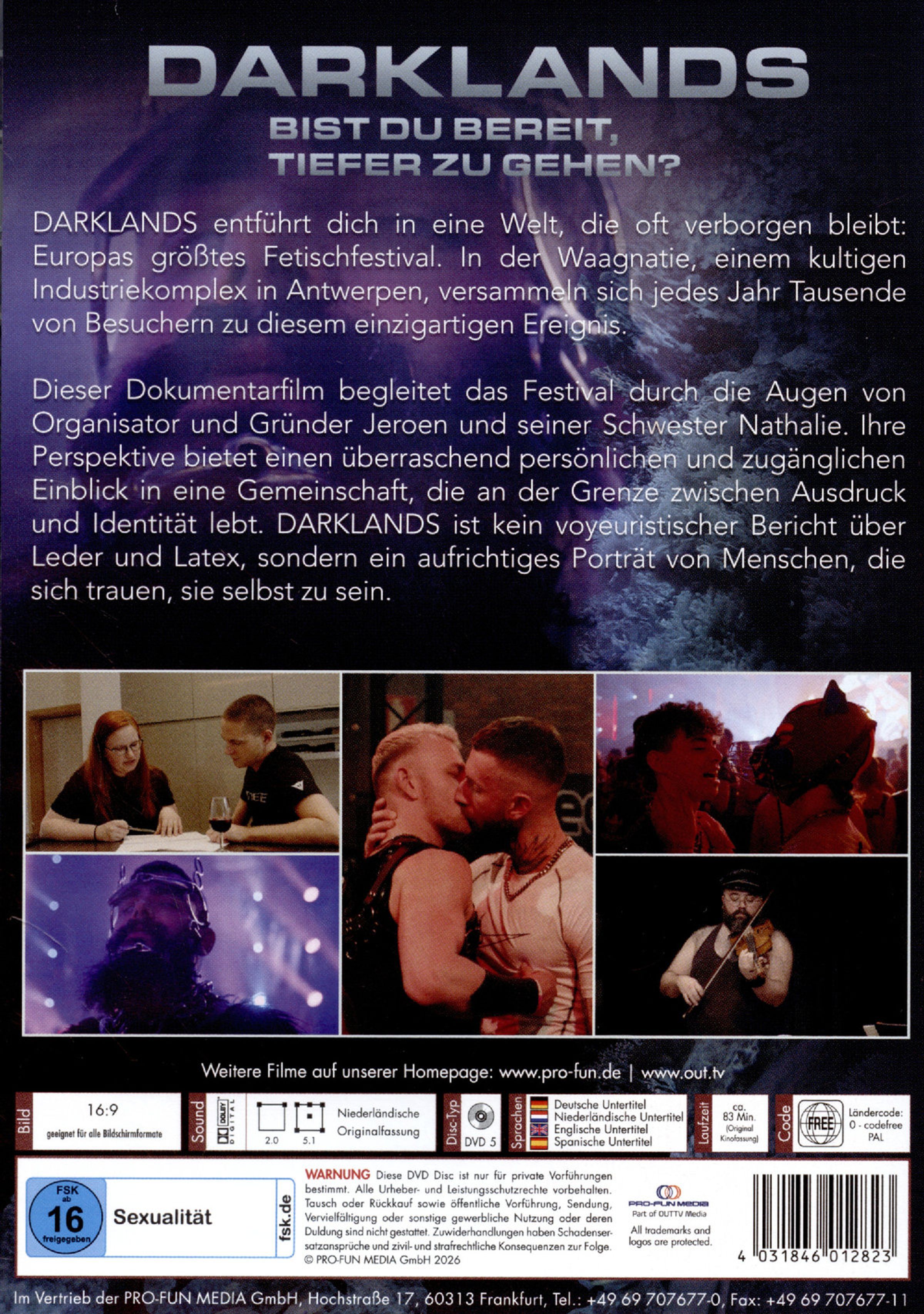 DARKLANDS entführt dich in eine Welt, die oft verborgen bleibt: Europas größtes Fetischfestival. In der Waagnatie, einem kultigen Industriekomplex in Antwerpen, versammeln sich jedes Jahr Tausende von Besuchern zu diesem einzigartigen Ereignis. Dieser Dokumentarfilm begleitet das Festival durch die Augen von Organisator und Gründer Jeroen und seiner Schwester Nathalie. Ihre Perspektive bietet einen überraschend persönlichen und zugänglichen Einblick in eine Gemeinschaft, die an der Grenze zwischen Ausdruck und Identität lebt. DARKLANDS ist kein voyeuristischer Bericht über Leder und Latex, sondern ein aufrichtiges Porträt von Menschen, die sich trauen, sie selbst zu sein.