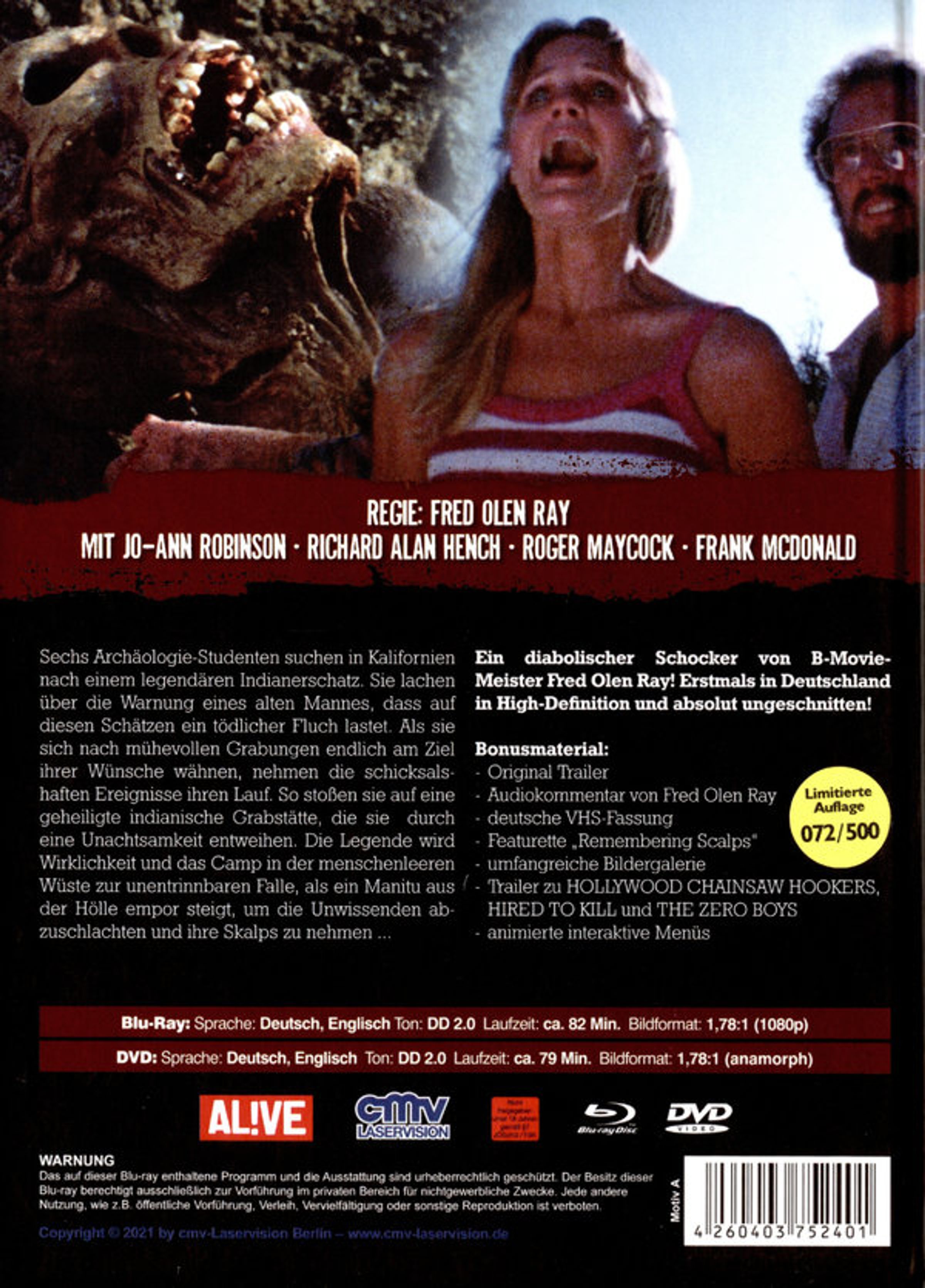 - Booklet; Audiokommentar von Fred Olen Ray; Featurette Remembering Scalps