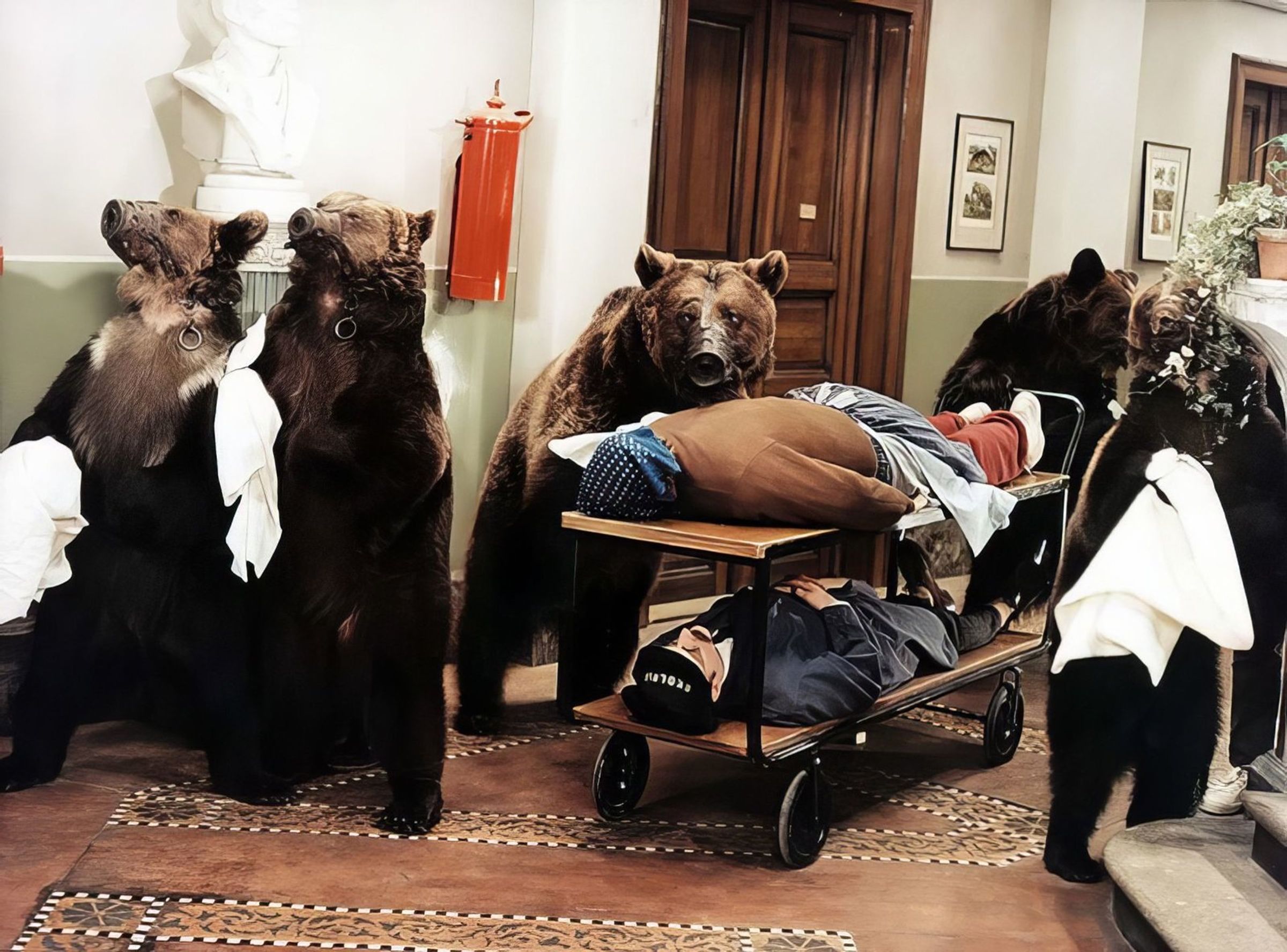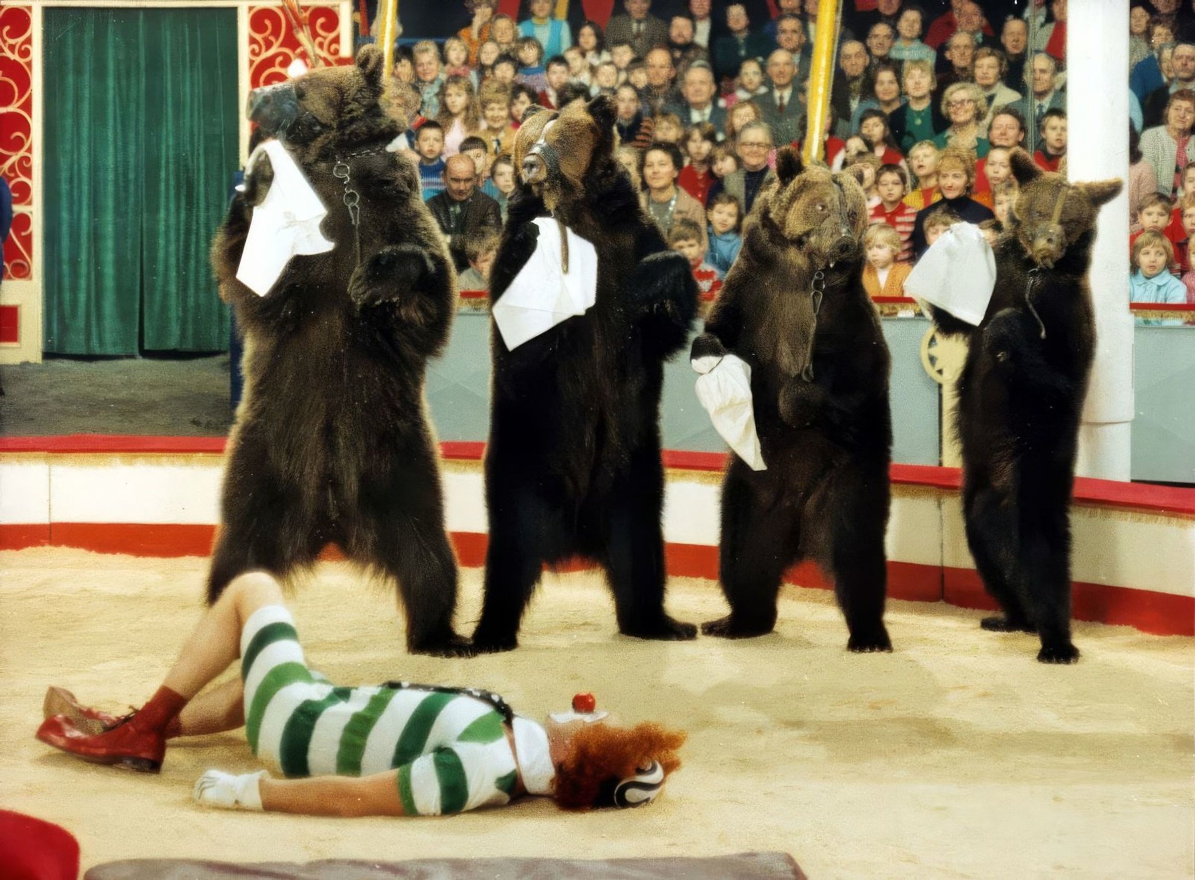 Der Zirkusdirektor mochte in seiner Vorstellung lieber Schweinchen als Bären haben und tauschte diese mit einem anderen Zirkusdirektor. Gleichzeitig entließ er den Clown (der in der BRD-Synchro »Zwiebel« und in der DDR-Synchro »Cibulka« heißt), der bislang immer mit den Bären gearbeitet hat. Cibulka arbeitet fortan in einer Schule, allerdings verkleidet als Frau. Als die Bären beim Transport fortlaufen, kommen sie in seine neue Arbeitsstätte und stiften dort Chaos. Und das, obwohl sich gerade der Schulinspektor angekündigt hat.