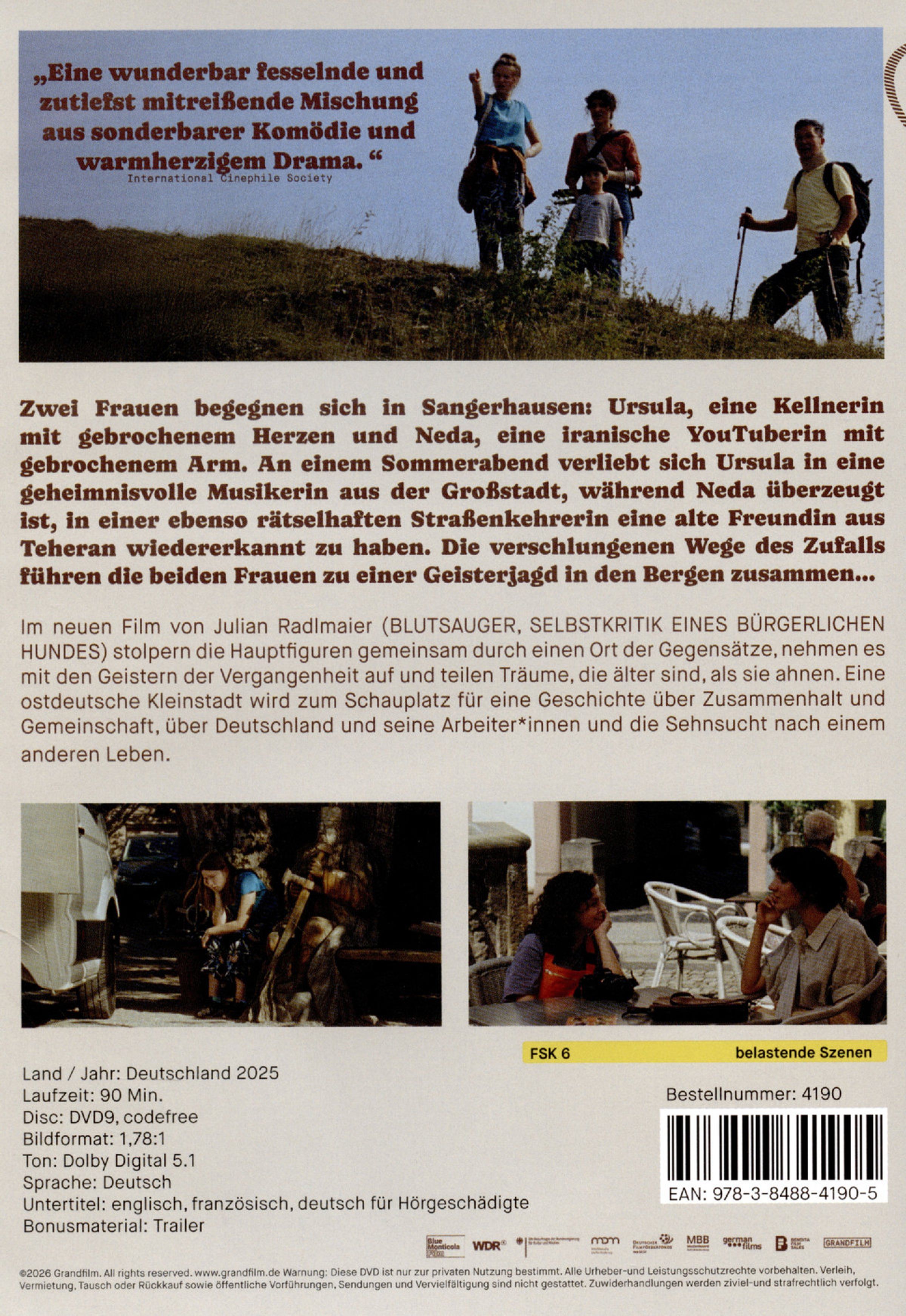 Zwei Frauen begegnen sich in Sangerhausen: Ursula, eine Kellnerin mit gebrochenem Herzen, und Neda, eine iranische YouTuberin mit gebrochenem Arm. An einem Sommerabend verliebt sich Ursula in eine geheimnisvolle Musikerin aus der Großstadt, während Neda überzeugt ist, in einer ebenso rätselhaften Straßenkehrerin eine alte Freundin aus Teheran wiedererkannt zu haben. Die verschlungenen Wege des Zufalls führen die beiden Frauen zu einer Geisterjagd in den Bergen zusammen ...