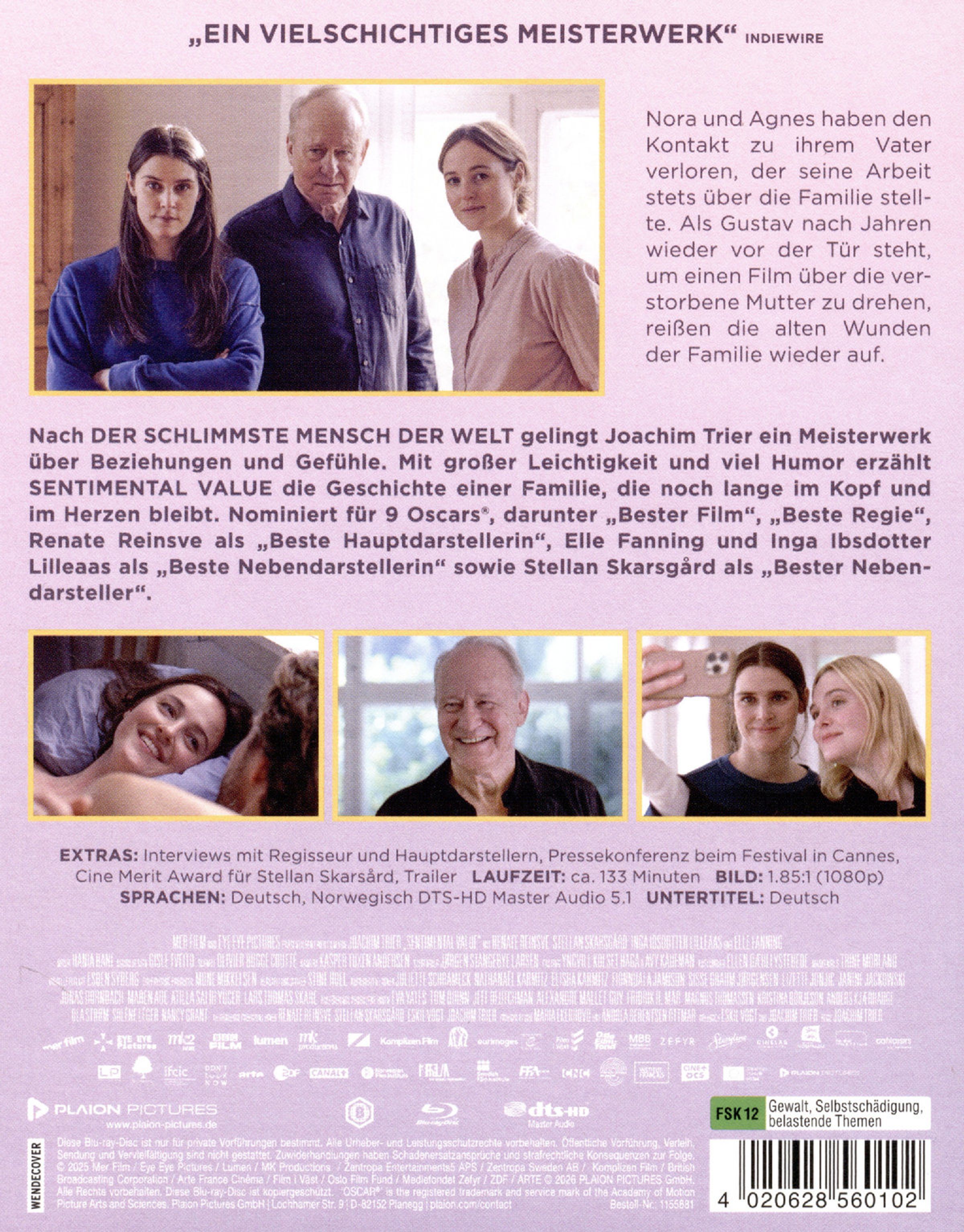 Nach DER SCHLIMMSTE MENSCH DER WELT gelingt Joachim Trier ein vielschichtiges Meisterwerk über Beziehungen und Gefühle, die nur schwer in Worte gefasst werden können. Getragen von dem großartigen Ensemble um Renate Reinsve, Stellan Skarsgård, Elle Fanning und Inga Ibsdotter Lilleaas erzählt SENTIMENTAL VALUE mit großer Leichtigkeit und viel Humor die Geschichte einer Familie, die noch lange im Kopf und im Herzen bleibt. Bei den Filmfestspielen von Cannes begeisterte SENTIMENTAL VALUE Publikum wie Kritiker gleichermaßen und wurde schließlich mit dem Großen Preis der Jury ausgezeichnet.