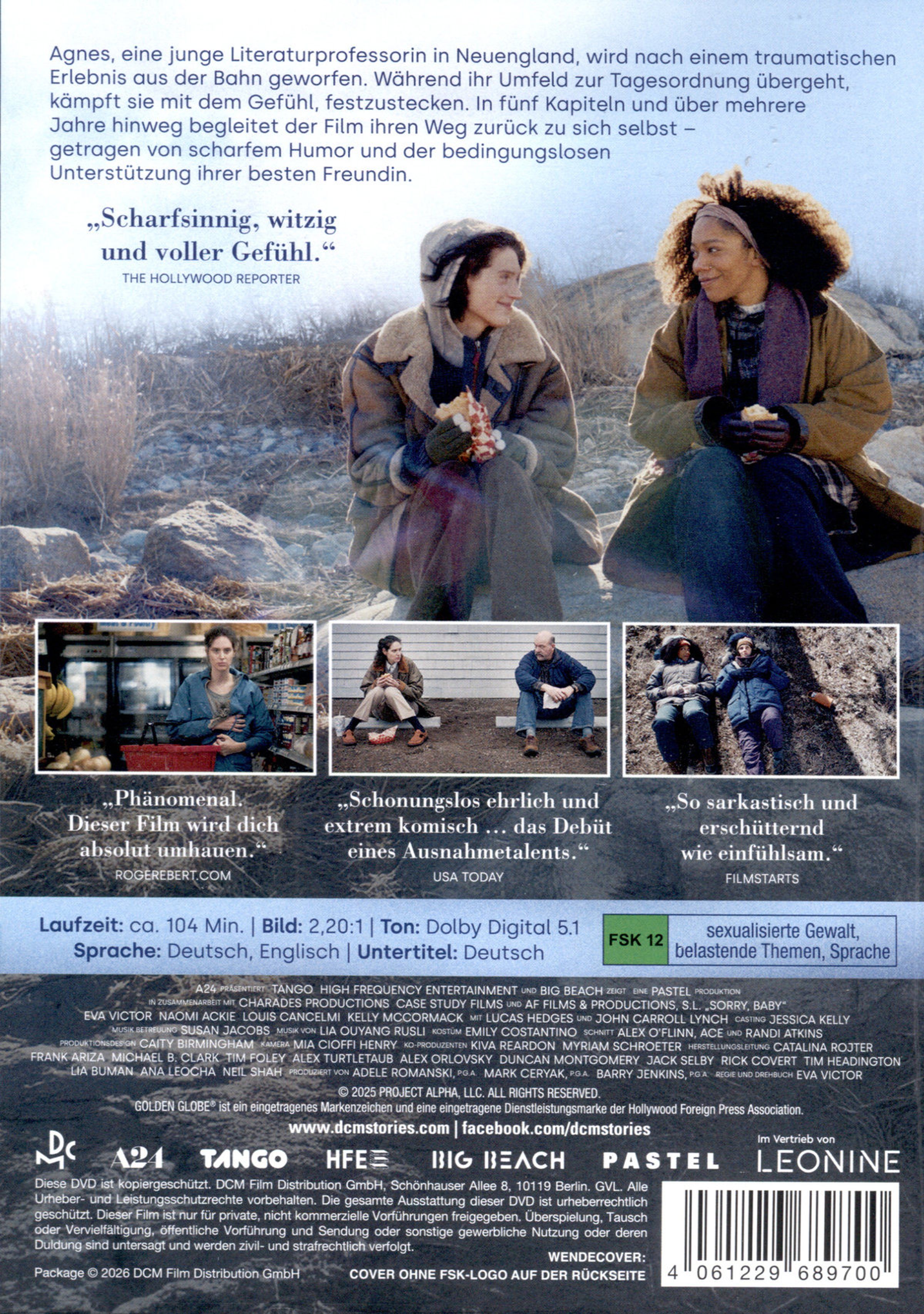 SORRY, BABY ist das kraftvolle Spielfilmdebüt von Eva Victor - eine kluge und zärtliche Geschichte über Heilung, Freundschaft und stille Selbstbehauptung. Produziert von Barry Jenkins, Adele Romanski und Mark Ceryak und vielfach ausgezeichnet, markiert der Film den Auftakt einer neuen Stimme im zeitgenössischen US-Independent-Kino - mit feinem Gespür für leise Momente, scharfem Humor und voller erzählerischer Klarheit.