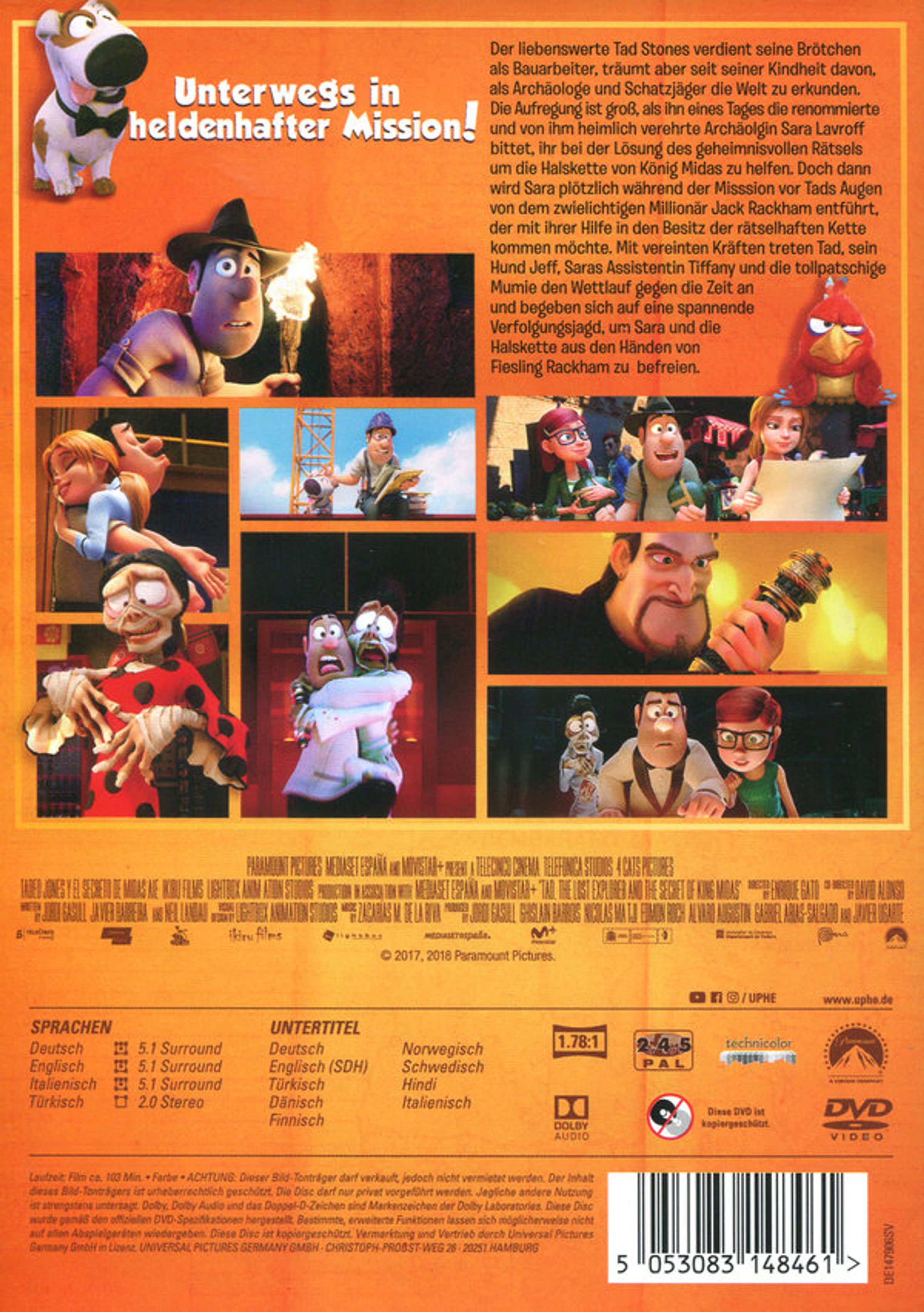 Der liebenswerte Tad Stones verdient seine Brötchen als Bauarbeiter, träumt aber seit seiner Kindheit davon, als Archäologe und Schatzjäger die Welt zu erkunden. Die Aufregung ist groß, als ihn eines Tages die renommierte Archäologin und sein heimlicher Schwarm Sara Lavroff bittet, ihr bei der Lösung des geheimnisvollen Rätsels um die Halskette von König Midas zu helfen. Doch dann wird während der Mission Sara plötzlich vor Tads Augen von dem zwielichtigen Millionär Jack Rackham entführt, der mit ihrer Hilfe in den Besitz der rätselhaften Kette kommen möchte. Mit vereinten Kräften treten Tad, sein Hund Jeff, Saras Assistentin Tiffany und die tollpatschige Mumie den Wettlauf gegen die Zeit an und begeben sich auf ein spannendes Verfolgungsjagd um Sara und die Halskette aus den Händen von Fiesling Rackham zu befreien...