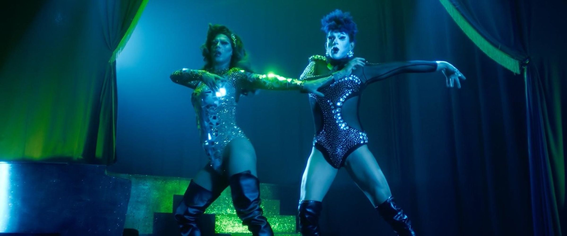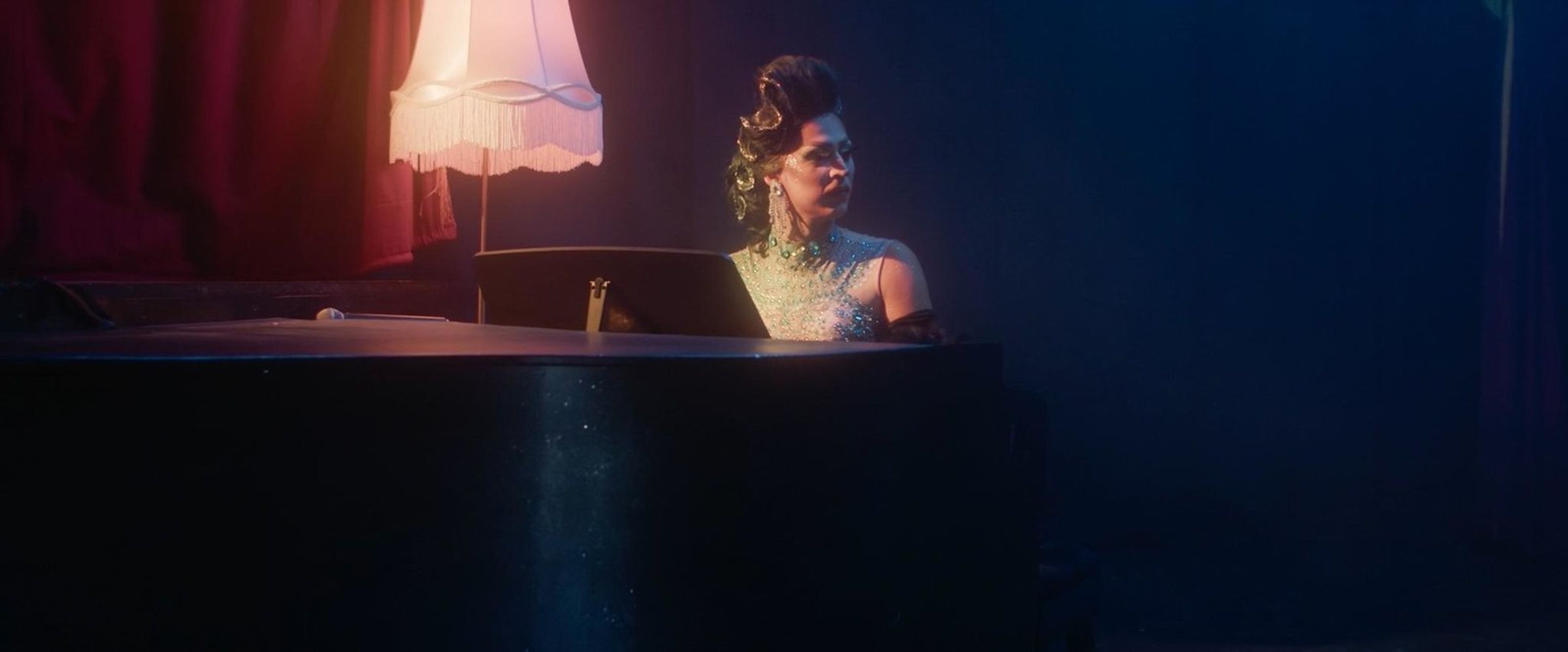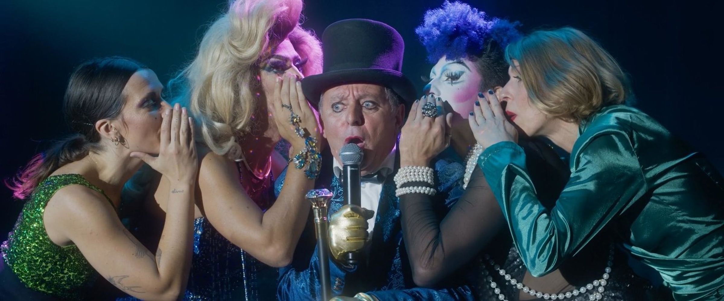 "The Bearded Mermaid" in pinker Schrift, Porträts von geschminkten Menschen mit Bärten, leuchtende Bühne im Hintergrund. FSK 16., DVD