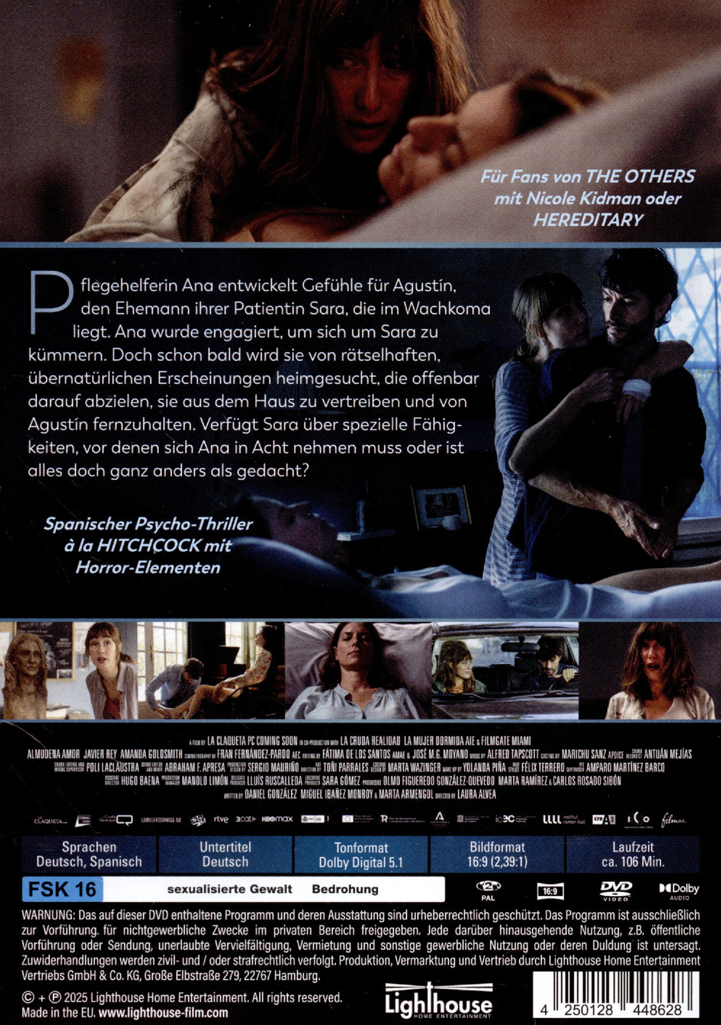 Pflegerin Ana entwickelt Gefühle für Agustín, den Ehemann ihrer Patientin Sara, die im Wachkoma liegt. Ana wurde engagiert, um sich um Sara zu kümmern. Doch schon bald wird sie von übernatürlichen Erscheinungen heimgesucht, die offenbar darauf abzielen, sie aus dem Haus zu vertreiben und von Agustín fernzuhalten. Verfügt Sara über spezielle Fähigkeiten, vor denen sich Ana in Acht nehmen muss?