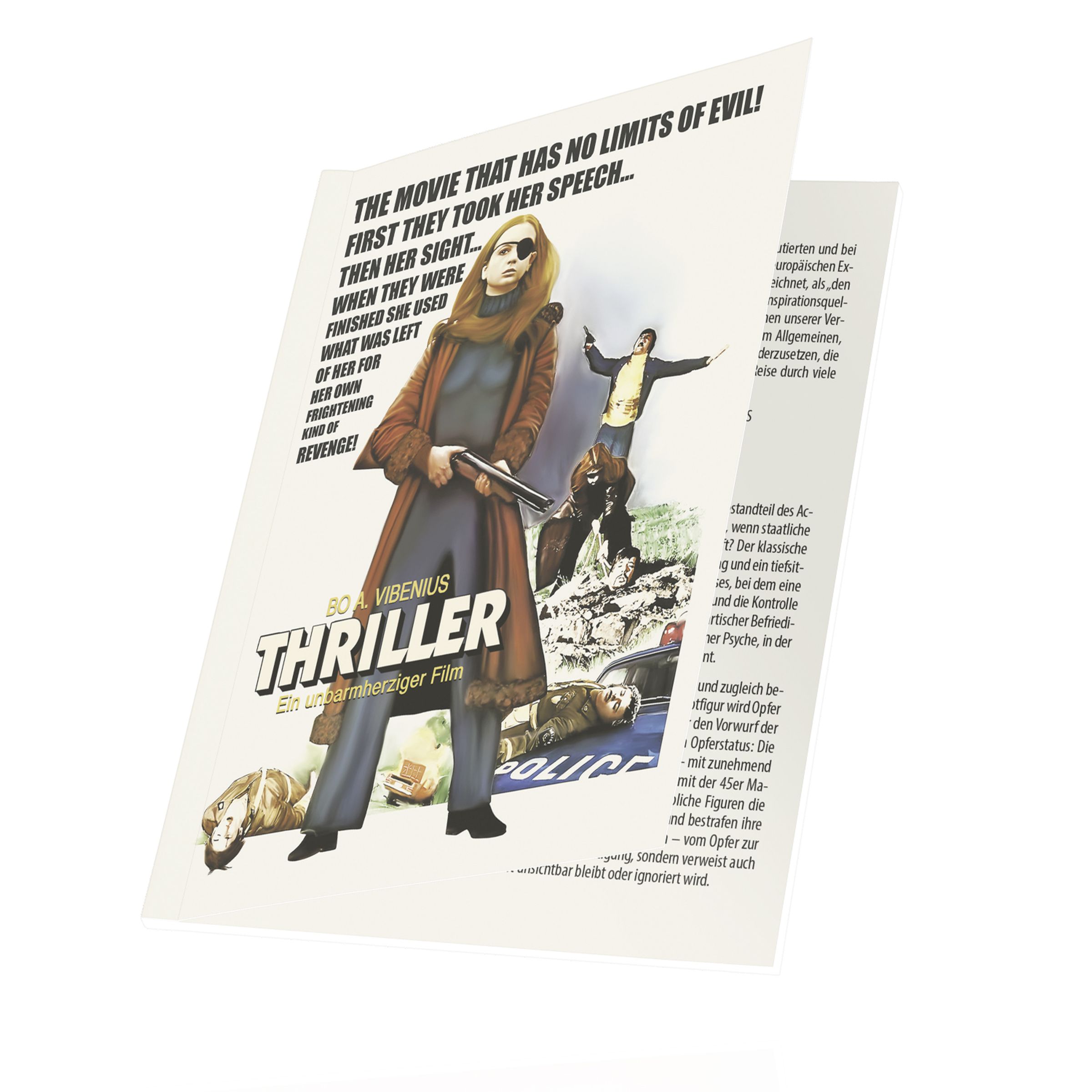 Hierzulande sehr schnell aus den Kinos verschwunden, galt THRILLER - EIN UNBARMHERZIGER FILM aufgrund seiner Seltenheit lange Zeit als Mysterium, offenbart das Werk für seine Entstehungszeit eine grafisch explizite Gewaltspirale, die selbst abgehärtete Zuschauer schlucken lässt: In rauen Bildern wird die Geschichte der jungen Frigga erzählt, die bereits als Kind Opfer eines ungesühnten sexuellen Übergriffs wurde, und nun in den Fängen des Zuhälters Tony ist, der sie drogenabhängig macht und zur Prostitution zwingt. Als sie ihm das Gesicht zerkratzt, als dieser sie für das Business 'einreiten' will, sticht er ihr das Auge aus. Frigga fügt sich. Doch als ihre Eltern ihretwegen Selbstmord begehen, entschließt sie sich, zurückzuschlagen. Heimlich erlernt sie verschiedene Kampfsporttechniken und übt sich im Fahren schneller Autos und im Umgang mit diversen Schusswaffen. Und dann ist der Tag ihrer Rache gekommen...