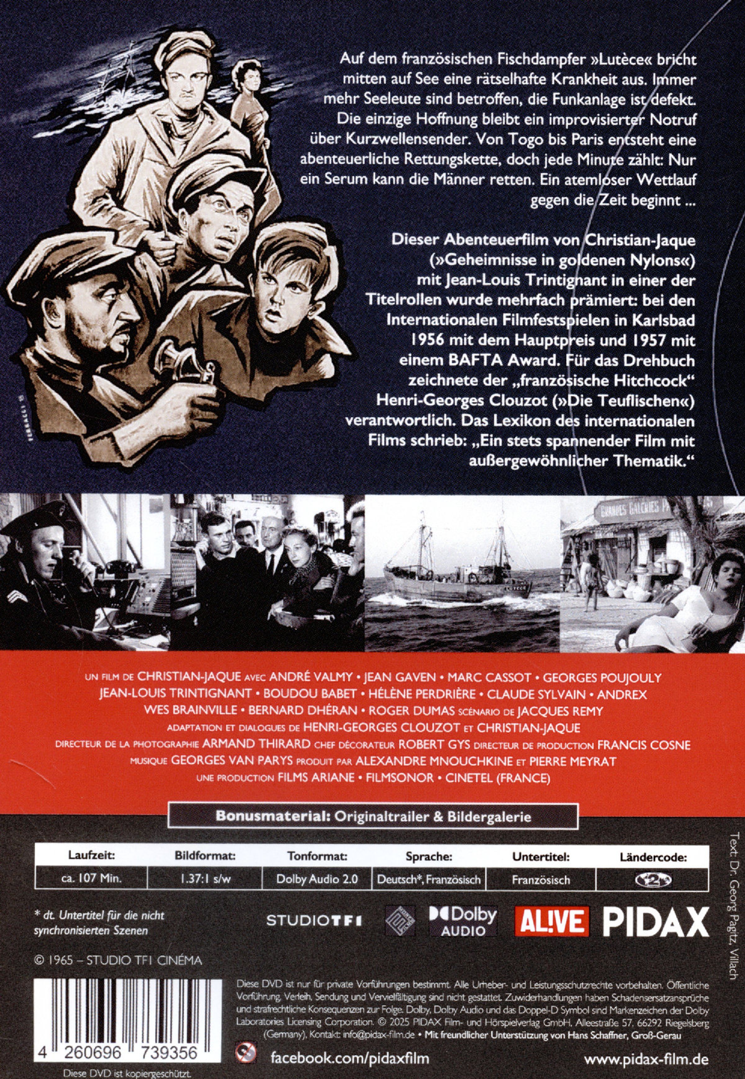 Auf dem französischen Fischdampfer »Lutèce« bricht mitten auf See eine rätselhafte Krankheit aus. Immer mehr Seeleute sind betroffen, die Funkanlage ist defekt. Die einzige Hoffnung bleibt ein improvisierter Notruf über Kurzwellensender. Von Togo bis Paris entsteht eine abenteuerliche Rettungskette, doch jede Minute zählt: Nur ein Serum kann die Männer retten. Ein atemloser Wettlauf gegen die Zeit beginnt ...