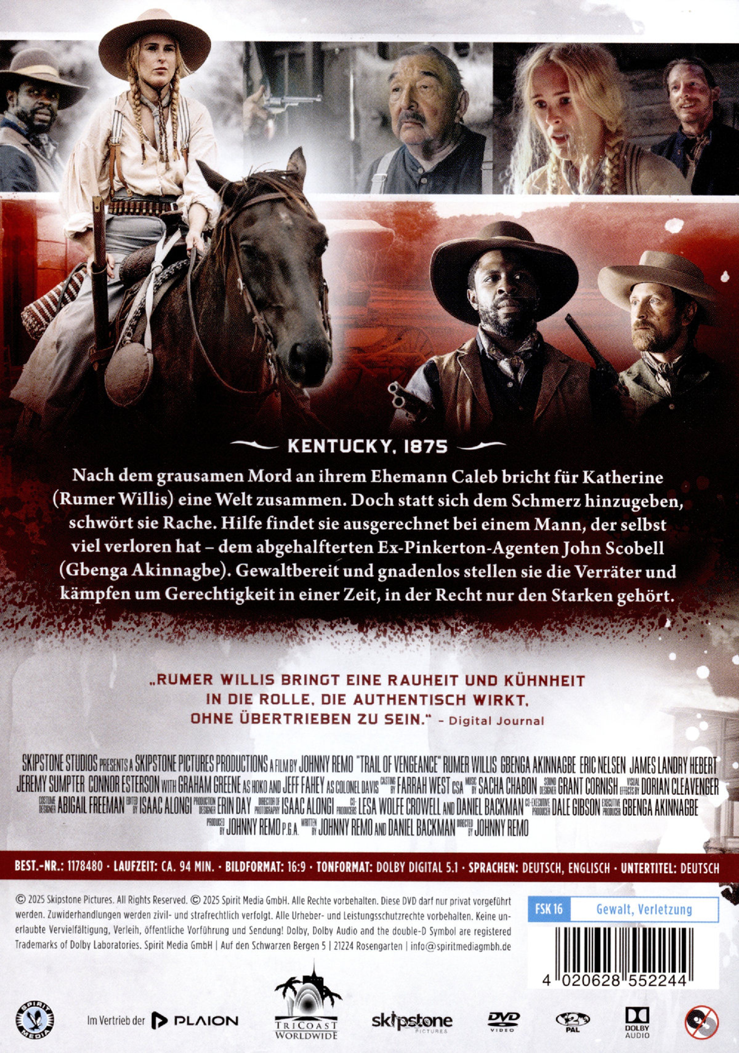Packend inszeniert, stark besetzt mit Rumer Willis in einer ihrer intensivsten Rollen, ist »Trail of Vengeance« ein emotionaler Ritt durch Schmerz, Hoffnung und Erlösung. Ein Film über Mut, Loyalität - und die Kraft, selbst in der tiefsten Dunkelheit das Licht nicht aus den Augen zu verlieren.