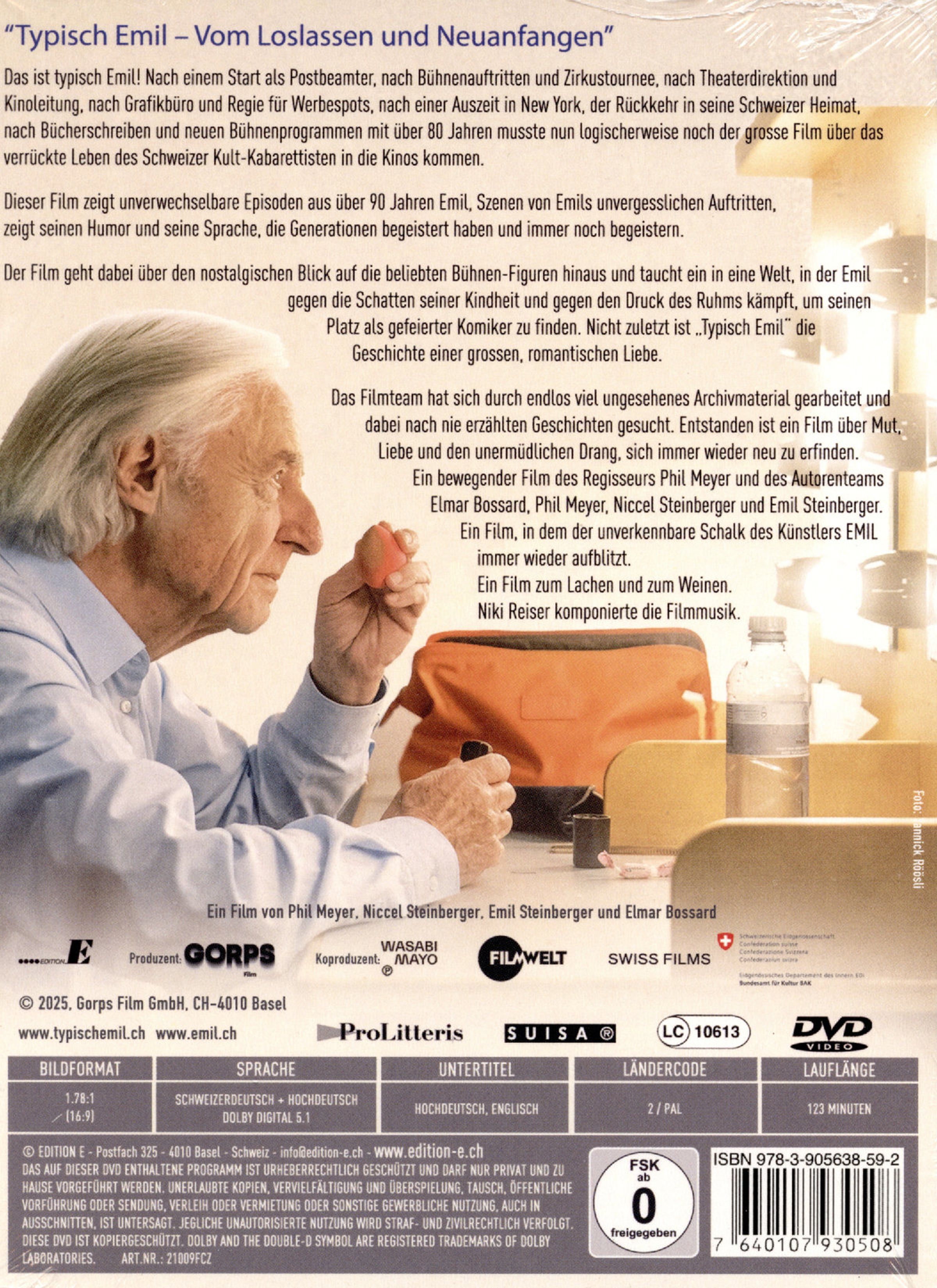 Typisch Emil! Nach Bühnenauftritten und Zirkustournee, nach Theaterdirektion und Kinoleitung, nach Grafikbüro und Regieführung, nach einer Auszeit in New York und Bücherschreiben kommt nun der Kinofilm über den Schweizer Kult-Kabarettisten Emil Steinberger. TYPISCH EMIL - VOM LOSLASSEN UND NEUANFANGEN bringt Emils unvergessliche Auftritte, seinen Humor und seine Sprache, die Generationen begeistert haben und immer noch begeistern, auf die Leinwand. Der Film geht dabei über den nostalgischen Blick auf die bekannten Bühnen-Figuren hinaus und taucht ein in eine Welt, in der Emil gegen die Schatten seiner Kindheit und den Druck des Erfolgs kämpft, um seinen Platz als gefeierter Komiker zu finden. Nicht zuletzt ist TYPISCH EMIL die Geschichte einer großen, romantischen Liebe.