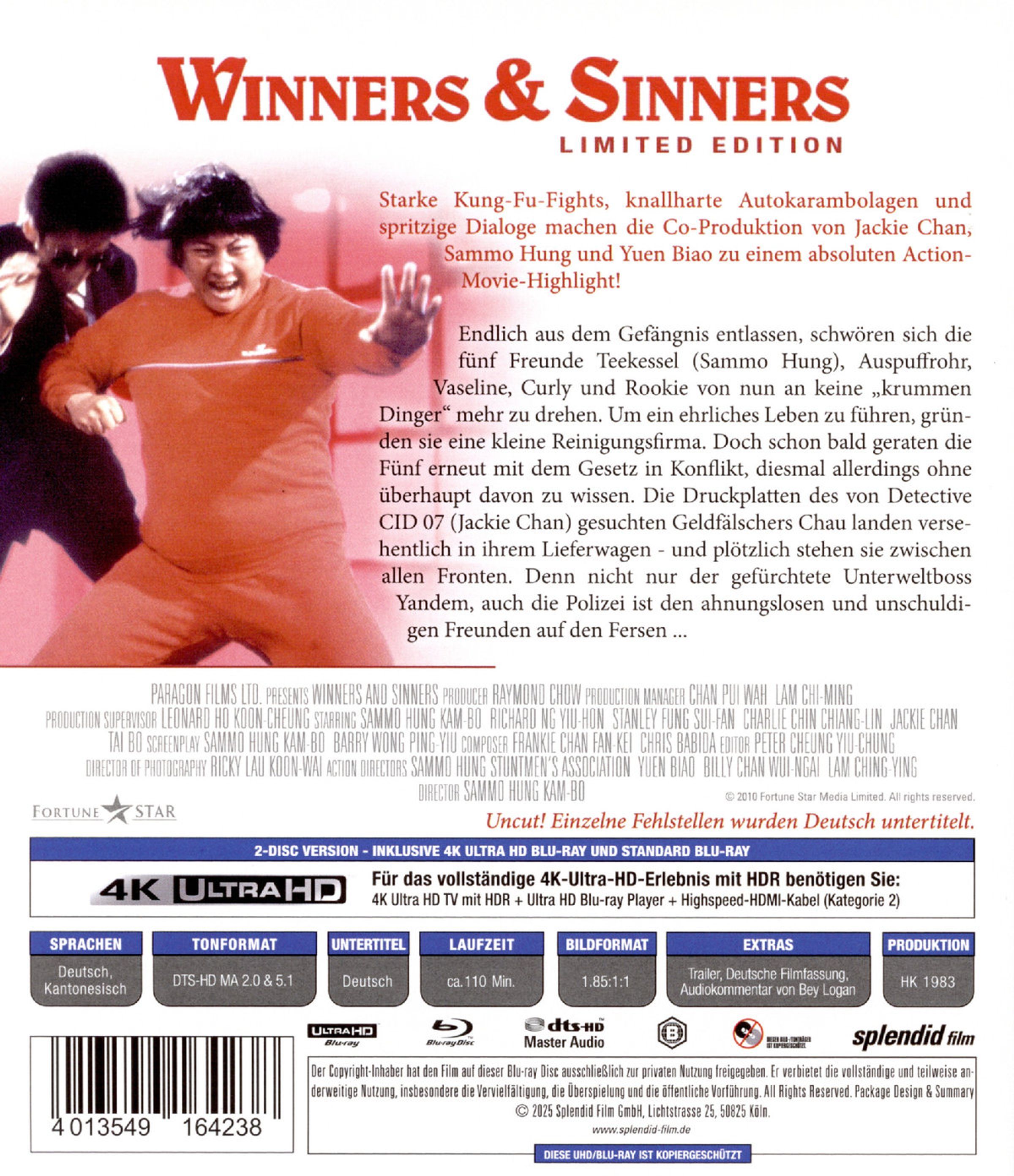 Starke Kung-Fu-Fights, knallharte Autokarambolagen und spritzige Dialoge machen die Co-Produktion von Jackie Chan, Sammo Hung und Yuen Biao zu einem absoluten Action-Movie-Highlight!