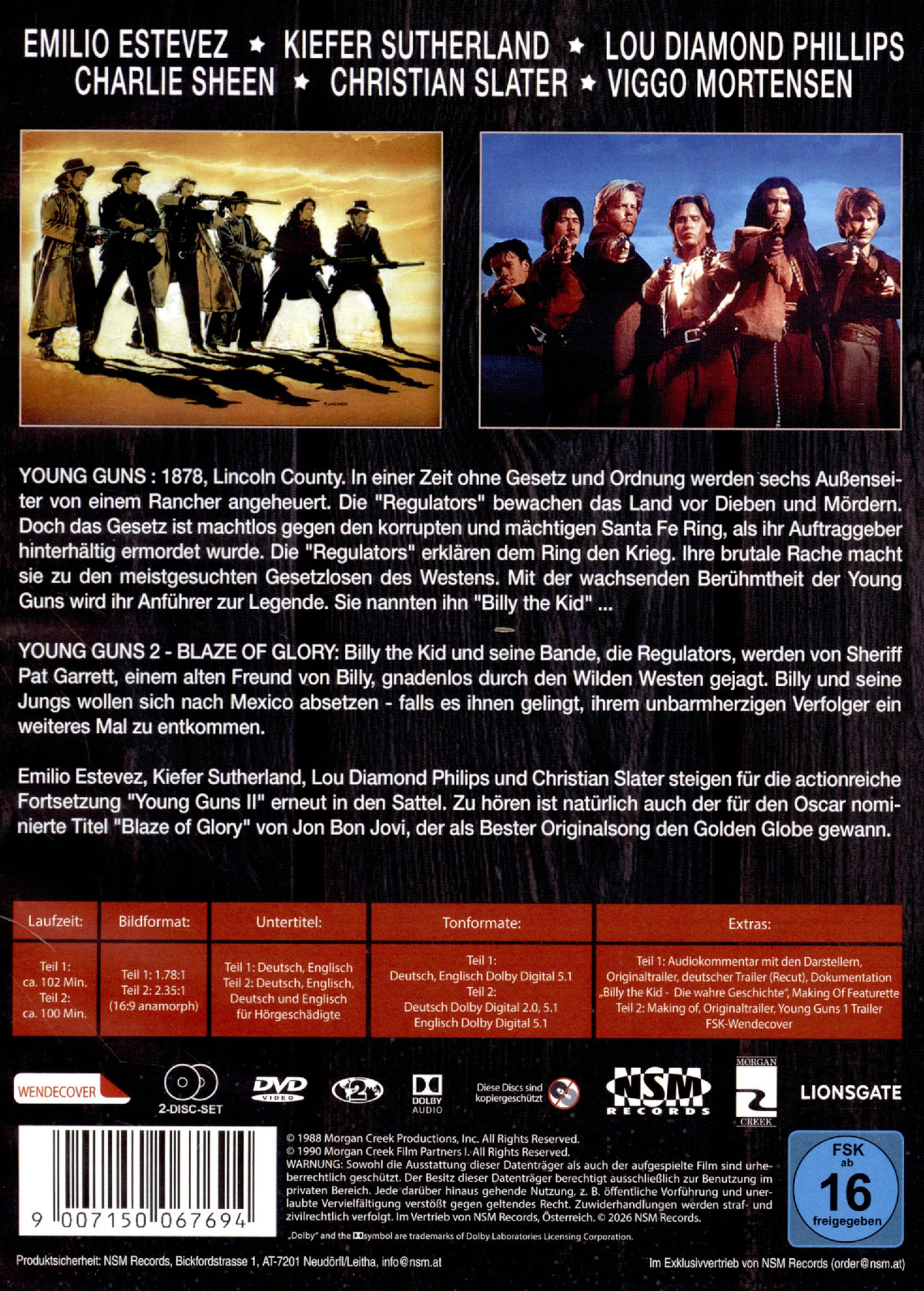 Emilio Estevez, Kiefer Sutherland, Lou Diamond Philips und Christian Slater steigen für die actionreiche Fortsetzung "Young Guns II" erneut in den Sattel. Zu hören ist natürlich auch der für den Oscar nominierte Titel »Blaze of Glory« von Jon Bon Jovi, der als Bester Originalsong den Golden Globe gewann.