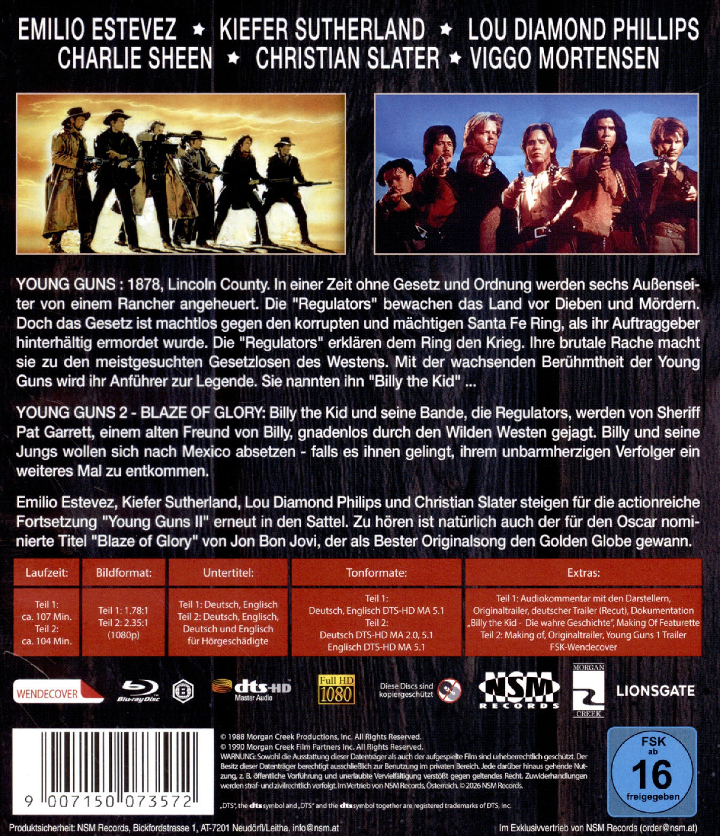 Emilio Estevez, Kiefer Sutherland, Lou Diamond Philips und Christian Slater steigen für die actionreiche Fortsetzung "Young Guns II" erneut in den Sattel. Zu hören ist natürlich auch der für den Oscar nominierte Titel »Blaze of Glory« von Jon Bon Jovi, der als Bester Originalsong den Golden Globe gewann.