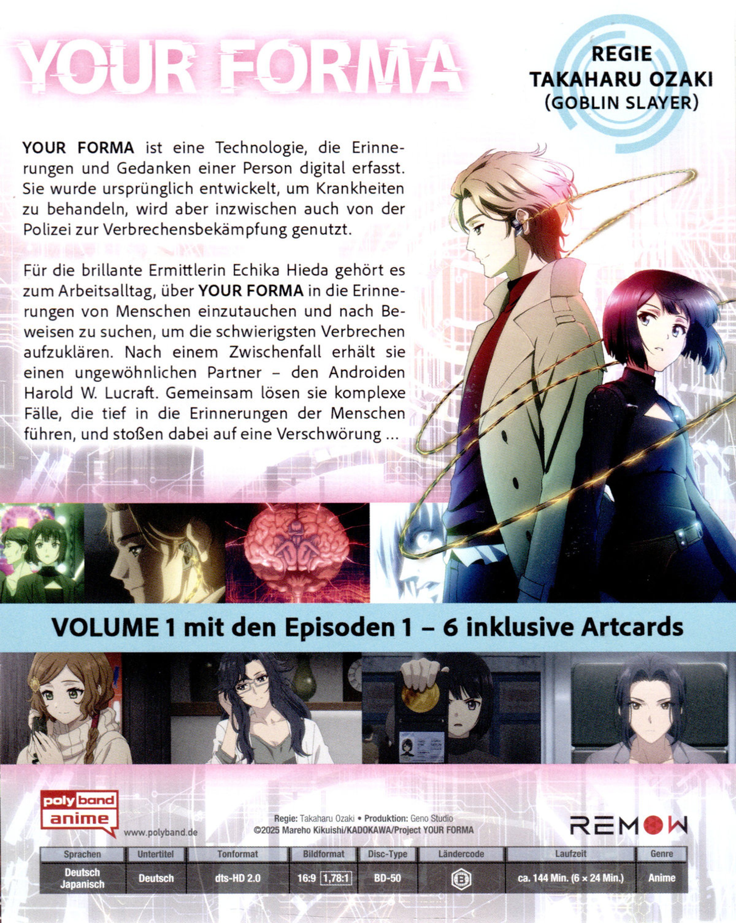 Für die brillante Ermittlerin Echika Hieda gehört es zum Arbeitsalltag, über YOUR FORMA in die Erinnerungen von Menschen einzutauchen und nach Beweisen zu suchen, um die schwierigsten Verbrechen aufzuklären. Nach einem Zwischenfall erhält sie einen ungewöhnlichen Partner - den Androiden Harold Lucraft. Gemeinsam lösen sie komplexe Fälle, die tief in die Erinnerungen der Menschen führen und stoßen dabei auf eine Verschwörung...