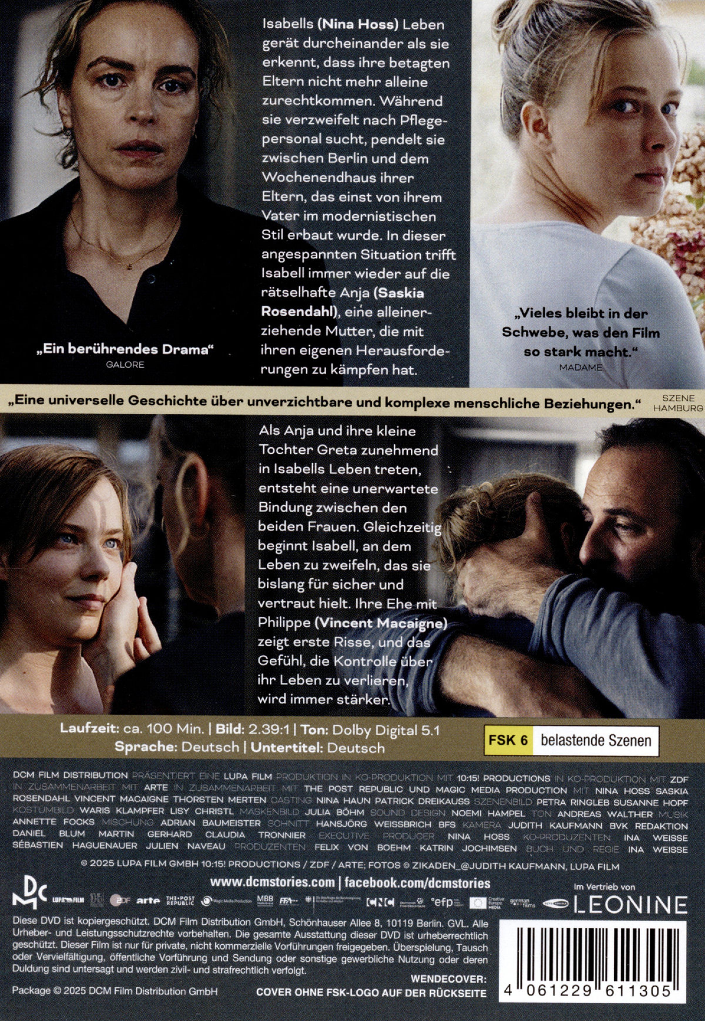 Isabells Leben gerät durcheinander als sie erkennt, dass ihre betagten Eltern nicht mehr alleine zurechtkommen. Während sie verzweifelt nach Pflegepersonal sucht, pendelt sie zwischen Berlin und dem Wochenendhaus ihrer Eltern, das einst von ihrem Vater im modernistischen Stil erbaut wurde. In dieser angespannten Situation trifft Isabell immer wieder auf die rätselhafte Anja, eine alleinerziehende Mutter, die mit ihren eigenen Herausforderungen zu kämpfen hat. Als Anja und ihre kleine Tochter Greta zunehmend in Isabells Leben treten, entsteht eine unerwartete Bindung zwischen den beiden Frauen. Gleichzeitig beginnt Isabell, an dem Leben zu zweifeln, das sie bislang für sicher und vertraut hielt. Ihre Ehe mit Philippe zeigt erste Risse, und das Gefühl, die Kontrolle über ihr Leben zu verlieren, wird immer stärker.