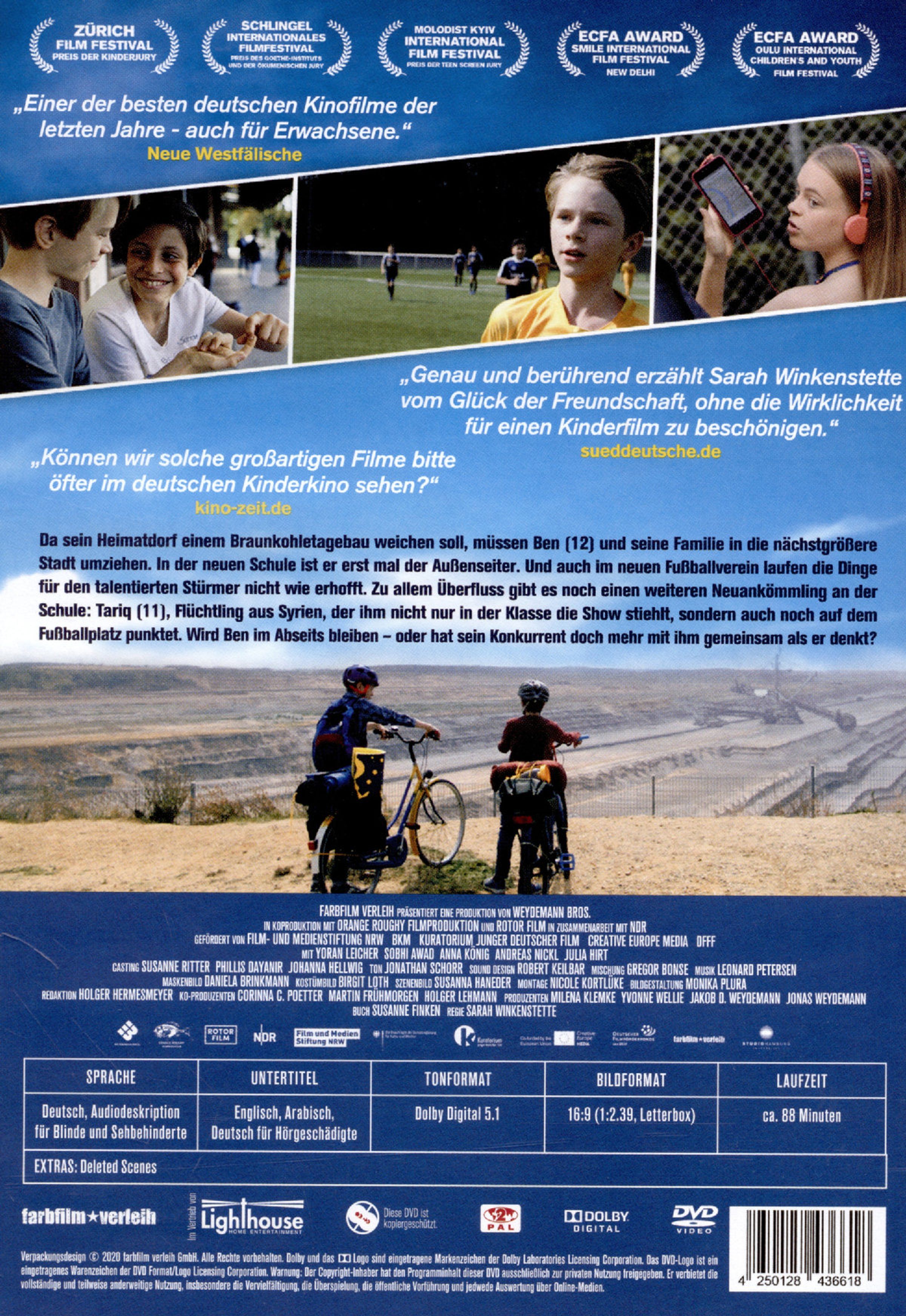 Da sein Heimatdorf einem Braunkohletagebau weichen soll, müssen Ben (12) und seine Familie in die nächstgrößere Stadt umziehen. In der neuen Schule ist er erst mal der Außenseiter. Und auch im neuen Fußballverein laufen die Dinge für den talentierten Stürmer nicht wie erhofft. Zu allem Überfluss gibt es noch einen weiteren Neuankömmling an der Schule: Tariq (11), Flüchtling aus Syrien, der ihm nicht nur in der Klasse die Show stehlt, sondern auch noch auf dem Fußballplatz punktet. Wird Ben im Abseits bleiben - oder hat sein Konkurrent doch mehr mit ihm gemeinsam als er denkt?