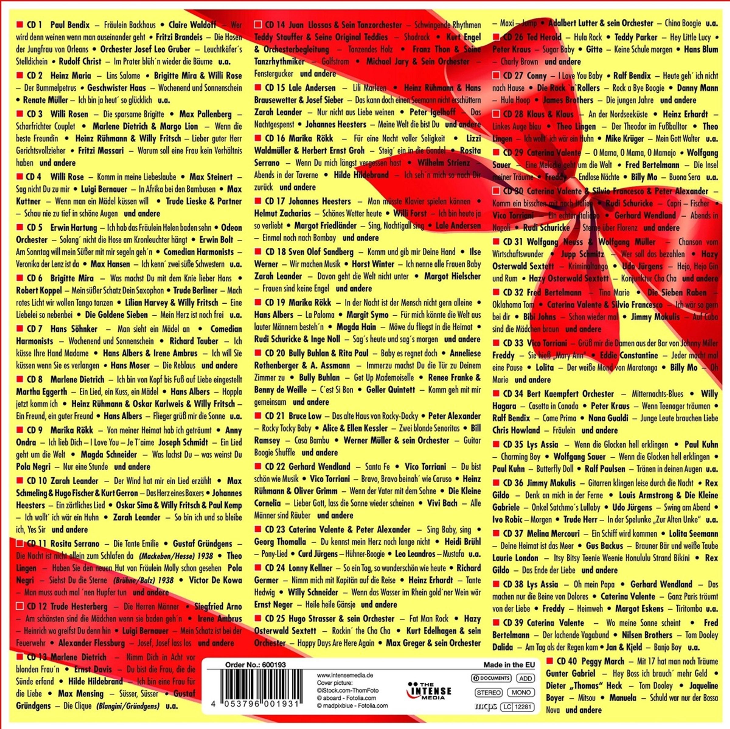 - Auf 40 CDs verteilt findet man hier eine einmalige Gesamtübersicht der deutschen Schlager-Musikgeschichte - von 1905 bis in die 1970er Jahre.