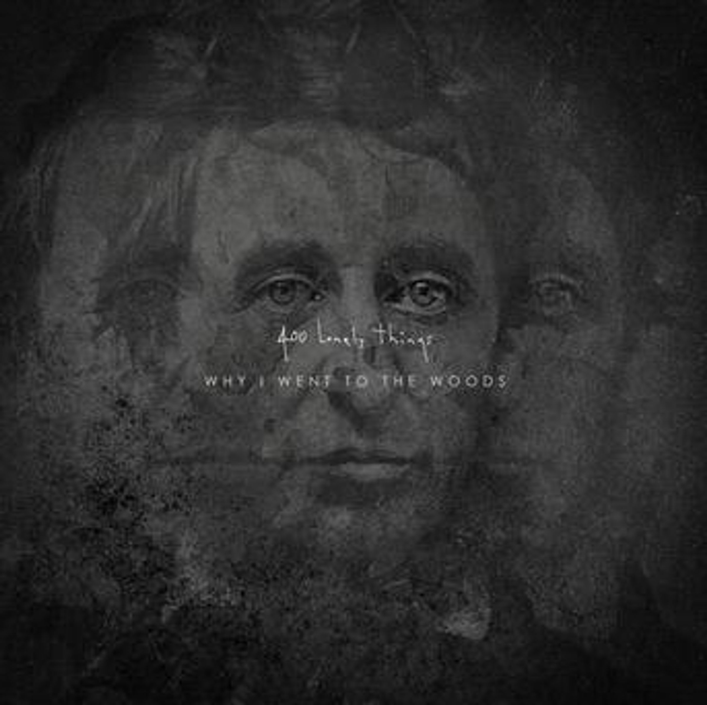„400 Lonely Things“, „Why I Went to the Woods“. Verwischte, geisterhafte Gesichter mit ernstem Ausdruck, schwarz-grau Töne., CD
