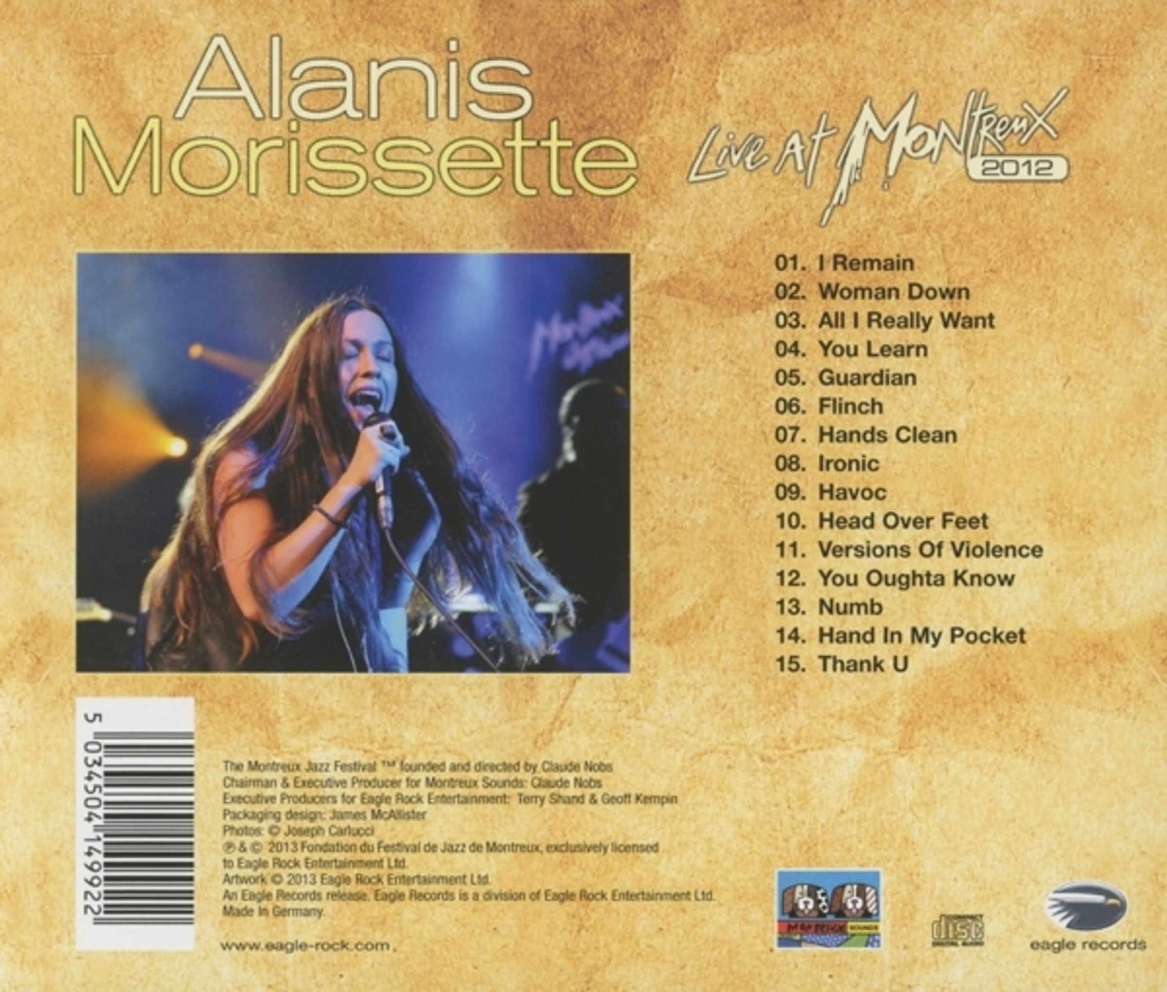 Es ist nicht zu bestreiten, dass die kanadisch-amerikanische Sängerin Alanis Morissette mit über 60 Millionen verkauften Tonträgern eine der erfolgreichsten Künstlerinnen und Songschreiberinnen unserer Zeit ist. Ihre zahlreichen Megahits, unverwechselbare Stimme und rasanten Live Shows haben Morissette über ihre Karriere mit Schnellstart zahlreiche treue Fans beschert. Jene Fans waren es auch, die Alanis Morissettes Auftritt auf Montreuxs legendärem Jazz Festival zu einem ganz besonderen Abend machten – aber auch die bestechende Form der Sängerin. Neben Songs ihres damals neusten Albums »Havoc And Bright Lights«, spielte sie vor allem diverse Klassiker ihrer Karriere.