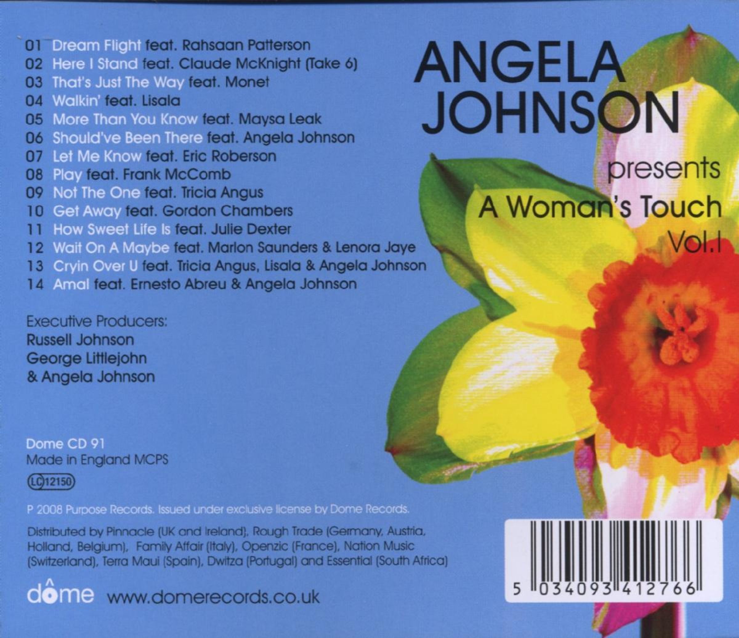 Die aus New York kommende Neo-Soul und R&B Sängerin Angela Johnson zählt zu den bekanntesten amerikanischen Neo-Soul Künstlerinnen und liefert auf "A Woman´s Touch Vol. 1" ihr erstes All-Star Producer Album ab. Die Gästeliste liest sich vorzüglich, mit an Bord sind u. a. Rahsaan Patterson, Frank McCom, Eric Roberson (der mit u. a. DJ Jazzy Jeff arbeitete), Gordon Chambers, Maysa u. v.a. Musikalisch liegt das Album zwischen Neo-Soul, R&B, Jazz-Funk und sogar deepem House. Als 12inch erscheinen in Kürze Remixe von DJ Spinna und Eric Roberson.