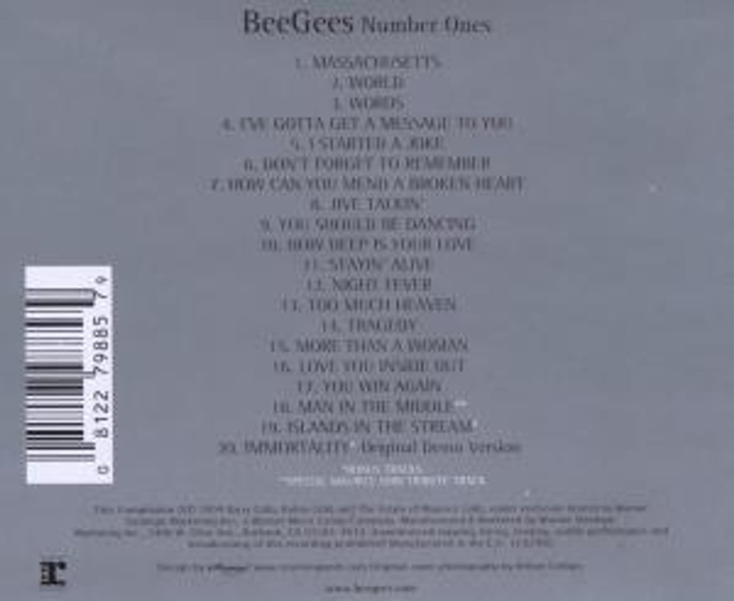 "Number Ones" vereint 20 Nummer-1 Hits auf einem Album, das alle Epochen dieses ungemein kreativen Trios abdeckt und unvergängliche Top-Hits präsentiert, darunter frühe Ohrwürmer wie Massachussets und World und feinfühlige Balladen wie Words, I’ve Gotta Get A Message To You und How Can You Mend A Broken Heart. Aber auch Highlights aus der Disco-Zeit gehören dazu, die heute zum Inbegriff für eine ganze Musikrichtung geworden sind: You Should Be Dancing, Stayin’ Alive und Night Fever. Und natürlich dürfen auch die großen Balladen der Disco-Ära nicht fehlen, etwa How Deep Is Your Love und More Than A Woman.