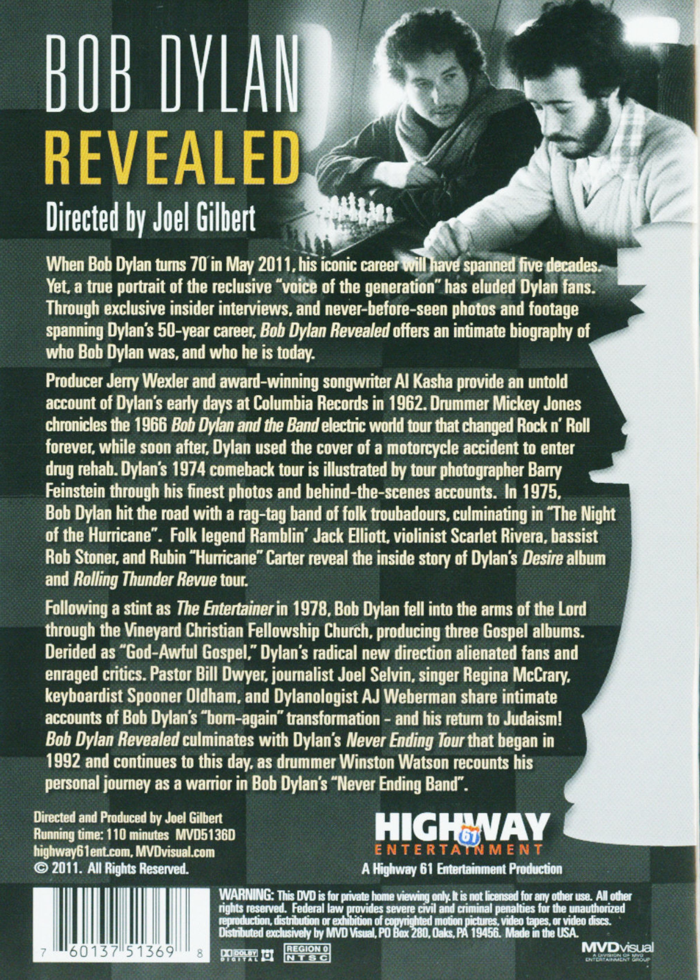 As Bob Dylan turns 70, a true portrait of the reclusive "voice of the generation" is revealed through exclusive interviews, and never-before-seen photos and films of Dylan's 50-year career. When Bob Dylan turns 70 in May 2011, his iconic career will have spanned five decades. Yet, a true portrait of the reclusive "voice of the generation" has eluded Dylan fans. Through exclusive insider interviews, and never-before-seen photos and footage spanning Dylan's 50-year career, Bob Dylan Revealed offers an intimate biography of who Bob Dylan was, and who he is today. Producer Jerry Wexler and award-winning songwriter Al Kasha provide an untold account of Dylan's early days at Columbia Records in 1962. Drummer Mickey Jones chronicles the 1966 Bob Dylan and the Band electric world tour that changed Rock n' Roll forever, while soon after, Dylan used the cover of a motorcycle accident to enter drug rehab. Dylan's 1974 comeback tour is illustrated by tour photographer Barry Feinstein through his finest photos and behind-the-scenes accounts. In 1975, Bob Dylan hit the road with a rag-tag band of folk troubadours, culminating in "The Night of the Hurricane." Folk legend Ramblin' Jack Elliott, violinist Scarlet Rivera, bassist Rob Stoner, and Rubin "Hurricane" Carter reveal the inside story of Dylan's Desire album and Rolling Thunder Revue tour. Following a stint as The Entertainer in 1978, Bob Dylan fell into the arms of the Lord through the Vineyard Christian Fellowship Church, producing three Gospel albums. Derided as "God-Awful Gospel," Dylan's radical new direction alienated fans and enraged critics. Pastor Bill Dwyer, journalist Joel Selvin, singer Regina McCrary, keyboardist Spooner Oldham, and Dylanologist AJ Weberman share intimate accounts of Bob Dylan's "born-again" transformation - and his return to Judaism! Bob Dylan Revealed culminates with Dylan's Never Ending Tour that began in 1992 and continues to this day, as drummer Winston Watson recounts his personal journey as a warrior in Bob Dylan's "Never Ending Band."