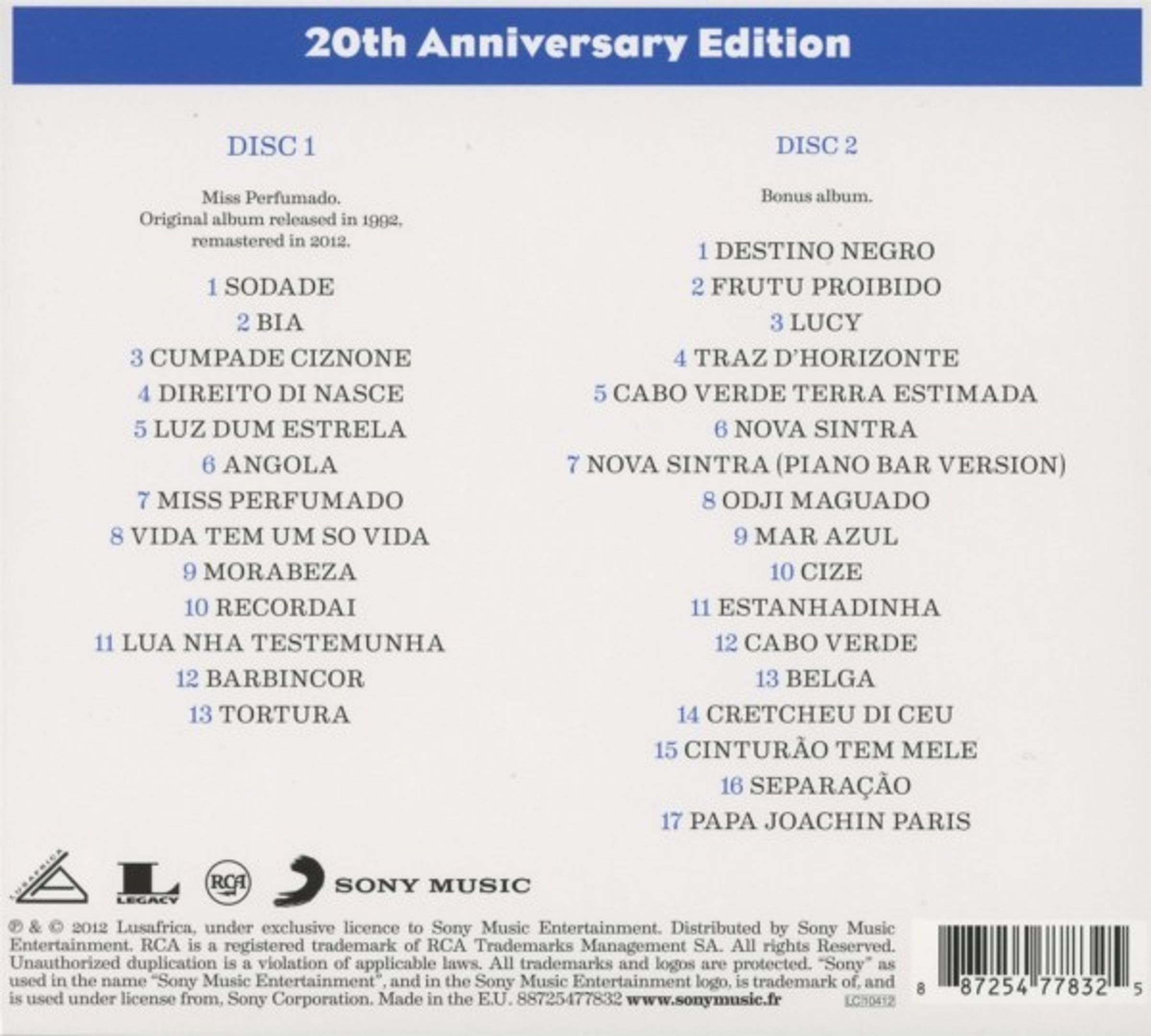 Zum 20-jährigen Jubiläum von "Miss Perfumado" ist jetzt eine 2 CD Sonderedition erschienen. Neben dem zum ersten Mal komplett remasterten Originalalbum, sind für die zweite CD die schönsten Titel aus Evoras ersten drei Alben ausgewählt worden, die sich allesamt wegweisend für die Erstehung von "Miss Perfumado" erweisen sollten. Das umfangreiche Booklet mit vielen Farbfotos und sämtlichen Lyrics in Kreol und Englisch gibt zudem einen Einblick in ihr Leben und Schaffen.