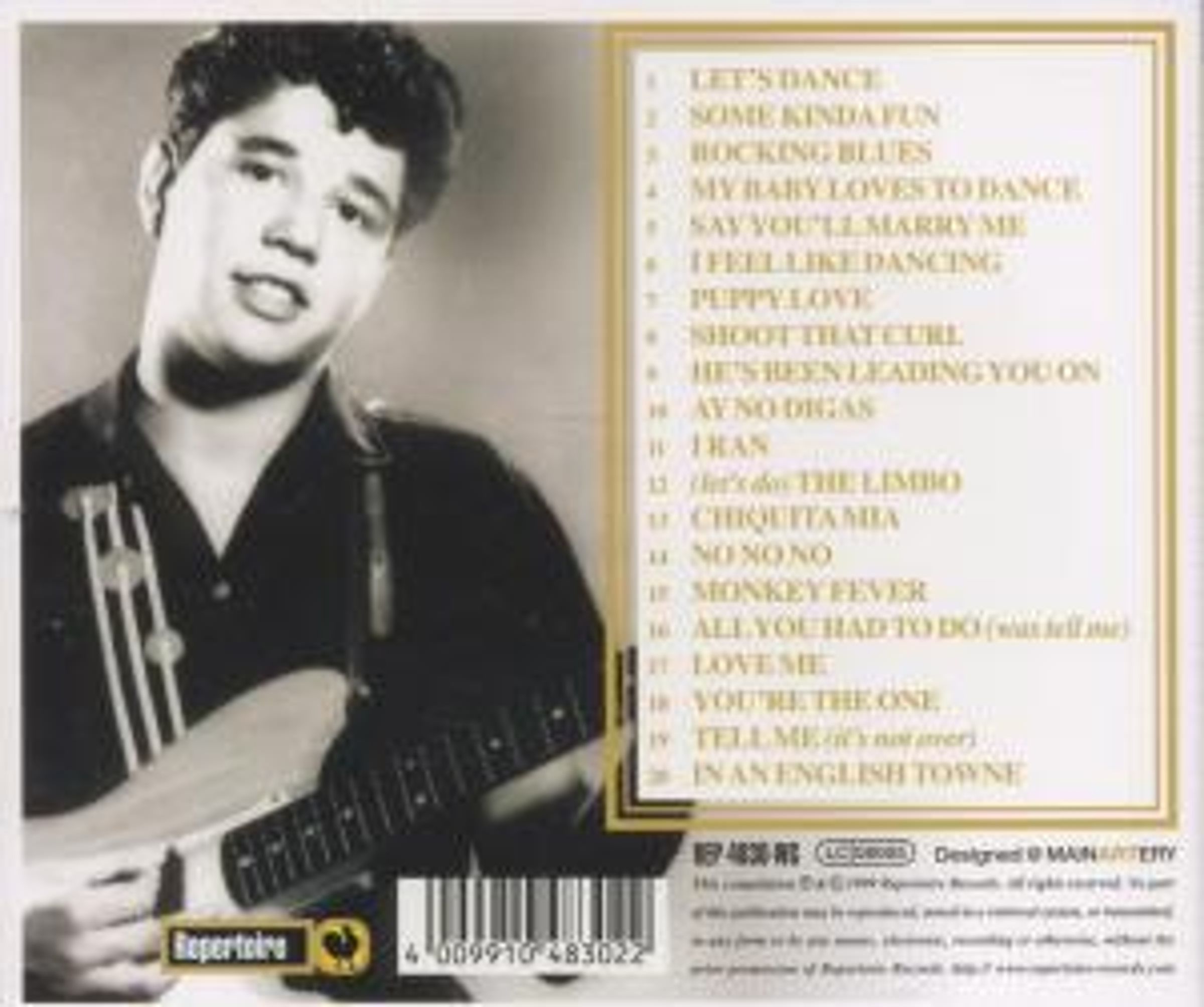 All the charm, energy and romance of the American teenage dream was summoned up by the fun hits purveyed by Chris Montez in the pre-Beatles era Sixties. The good-looking young singer was born Ezekiel Christopher Montanez in Los Angeles in 1943 and was discovered by record producer Jim Lee of Monogram Records. As Chris Montez he scored a worldwide smash hit with ‘Let’s Dance’ in 1962, which got to Number 2 in the UK and Number 4 in the US charts. ‘Some Kinda Fun’ was another big dance hit the following year, and both songs are included among the 20 lively tracks on this rockin’ compilation. Leave your inhibitions behind and let’s dance.