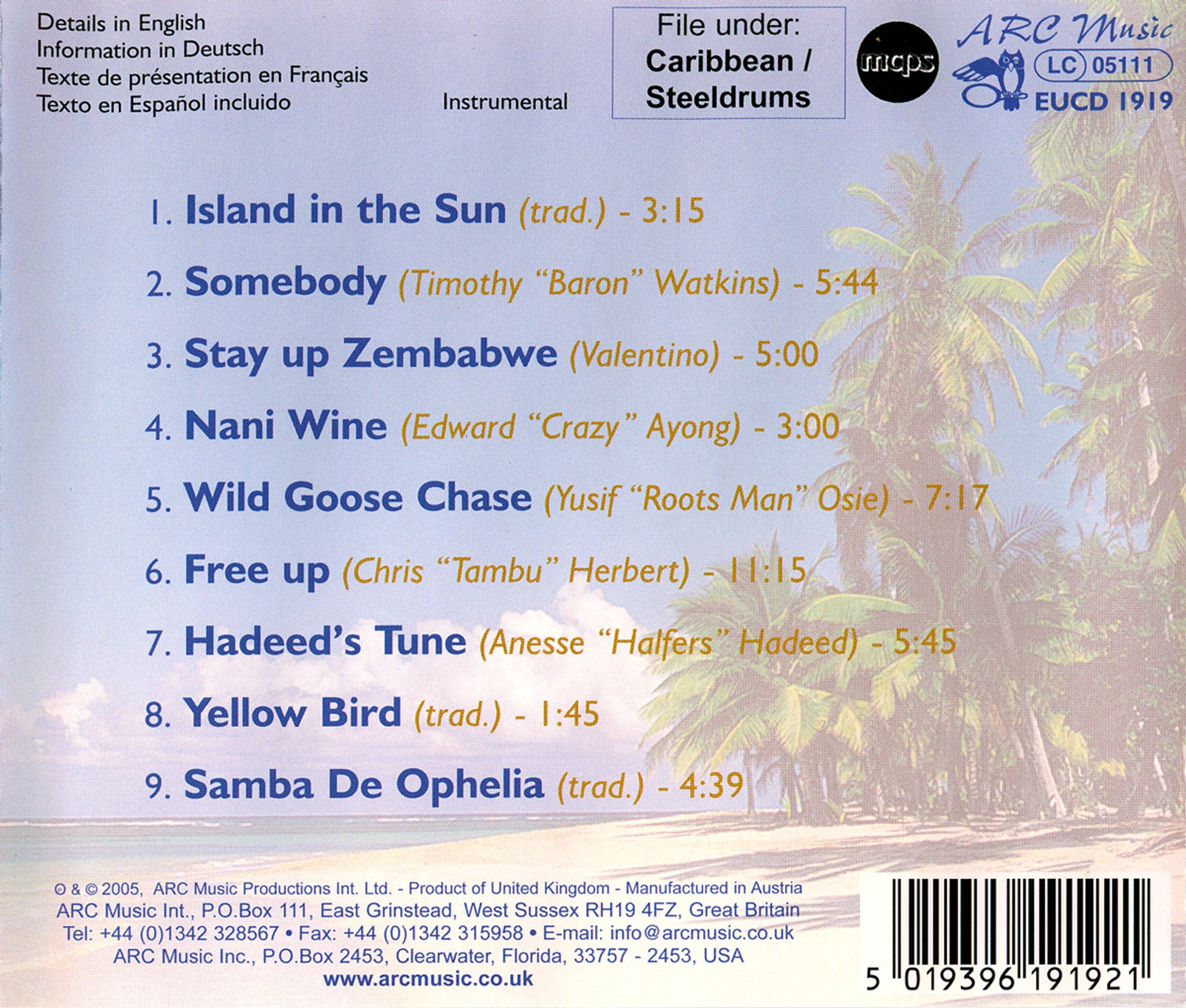 Die Ebony Steelband, Gewinner zahlreicher Wettbewerbe auf nationaler und internationaler Ebene, ist heute die älteste und eine der beliebtesten Steelbands im Vereinigten Königreich und zählt zu den führenden Steelbands in Europa. Dieses Album enthält Favoriten wie Island in the Sun, Wild Goose Chase, Yellow Bird, Samba De Ophelia und mehr.