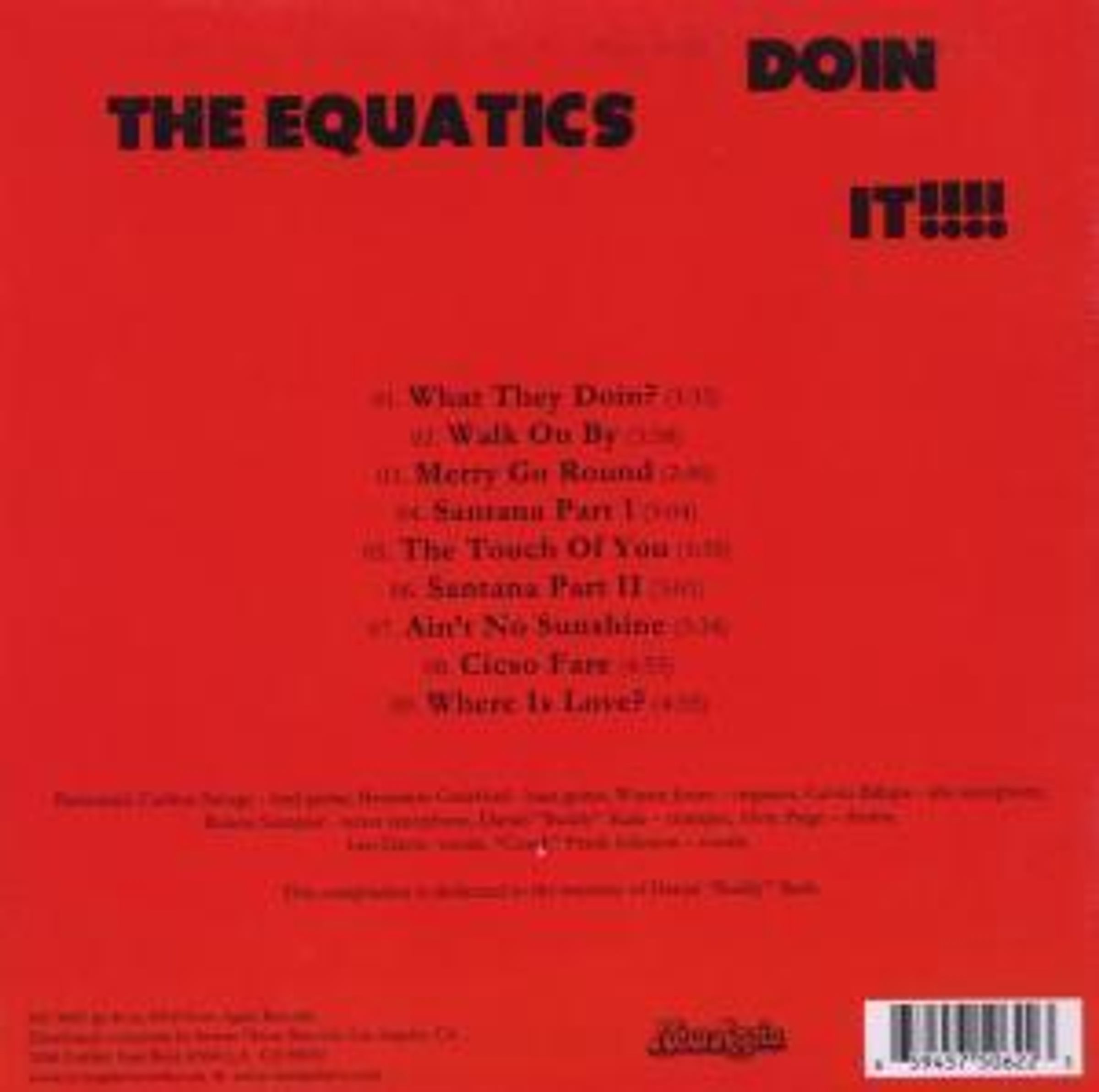 The Equatics waren eine Gruppe äußerst talentierter Musiker aus der Gegend um Hampton, Virginia, die 1972 den Pepsi Award in der Kategorie „Best New Band“ gewannen. Zu diesem Zeitpunkt entschloss sich die Band das Album „Doin' It!!!!“ aufzunehmen. Mit der Hilfe von Frank H. Johnson schufen sie ein atemberaubendes Werk - eine musikalische Mischung aus Funk, Soul und Psychedelic Rock, gleichermaßen von Jimi Hendrix wie auch von James Brown beeinflusst. Leider wurden von „Doin' It!!!!“ nur 100 Exemplare gepresst, und so ist es kein Wunder, dass die Scheibe heute zu den seltensten Veröffentlichungen im Bereich Psychedelic Soul zählt. Auf Hidden Gems ist nun eine exklusive Wiederveröffentlichung erhältlich. Für Fans von Bill Withers, Bar-Kays und East Of Underground.