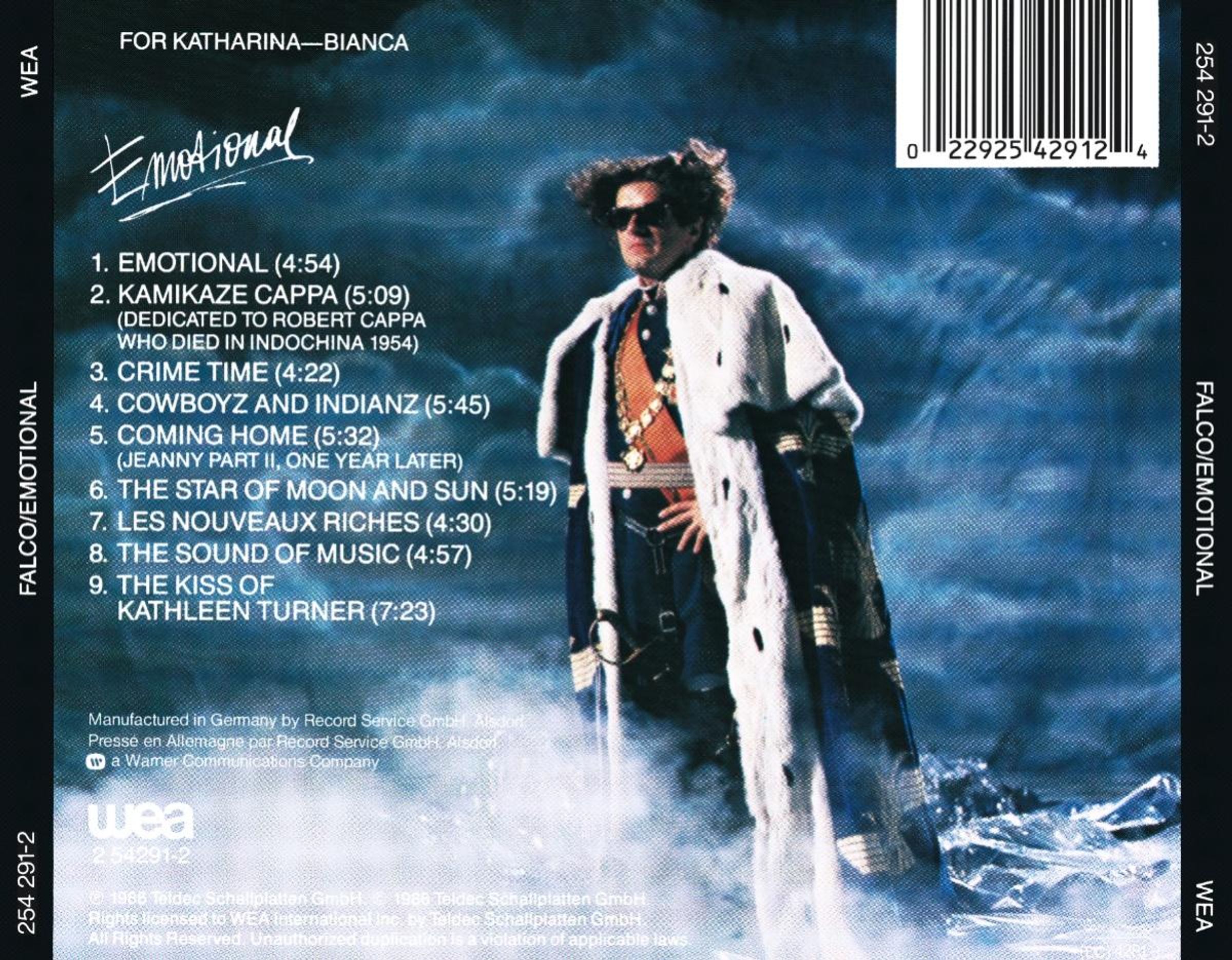 Die Veröffentlichung von »Emotional« war ein weiteres erfolgreiches Kapitel in der herausragenden Karriere von Falco. Das Album wurde am 1. November 1986 veröffentlicht und erreichte in Deutschland und Österreich direkt Platz 1 und in mehreren anderen europäischen Ländern die Top 10. »Emotional« war das zweite von Bolland und Bolland produzierte Falco-Album und enthielt Singles wie »The Sound of Musik«, das auch außerhalb des deutschsprachigen Raums großen Erfolg hatte und in den USA die Top 20 der Dance-Charts erreichte, und »Coming Home (Jeanny Part 2. Ein Jahr Danach - One Year Later)«, das die Spitze der deutschen Charts erreichte und eine Fortsetzung von Falcos berühmtem Song »Jeanny« aus dem Jahr 1985 war, in dem es um eine junge Frau ging, die ein Jahr lang verschwunden und immer noch nicht gefunden worden war. Weitere bemerkenswerte Titel des Albums waren »Emotional«, »The Kiss of Kathleen Turner« und »Kamikaze Capa«, letzteres als Hommage an den verstorbenen Fotojournalisten Robert Capa geschrieben. 1987 ging Falco mit »Emotional« auf Welttournee, die in Japan abgeschlossen wurde.