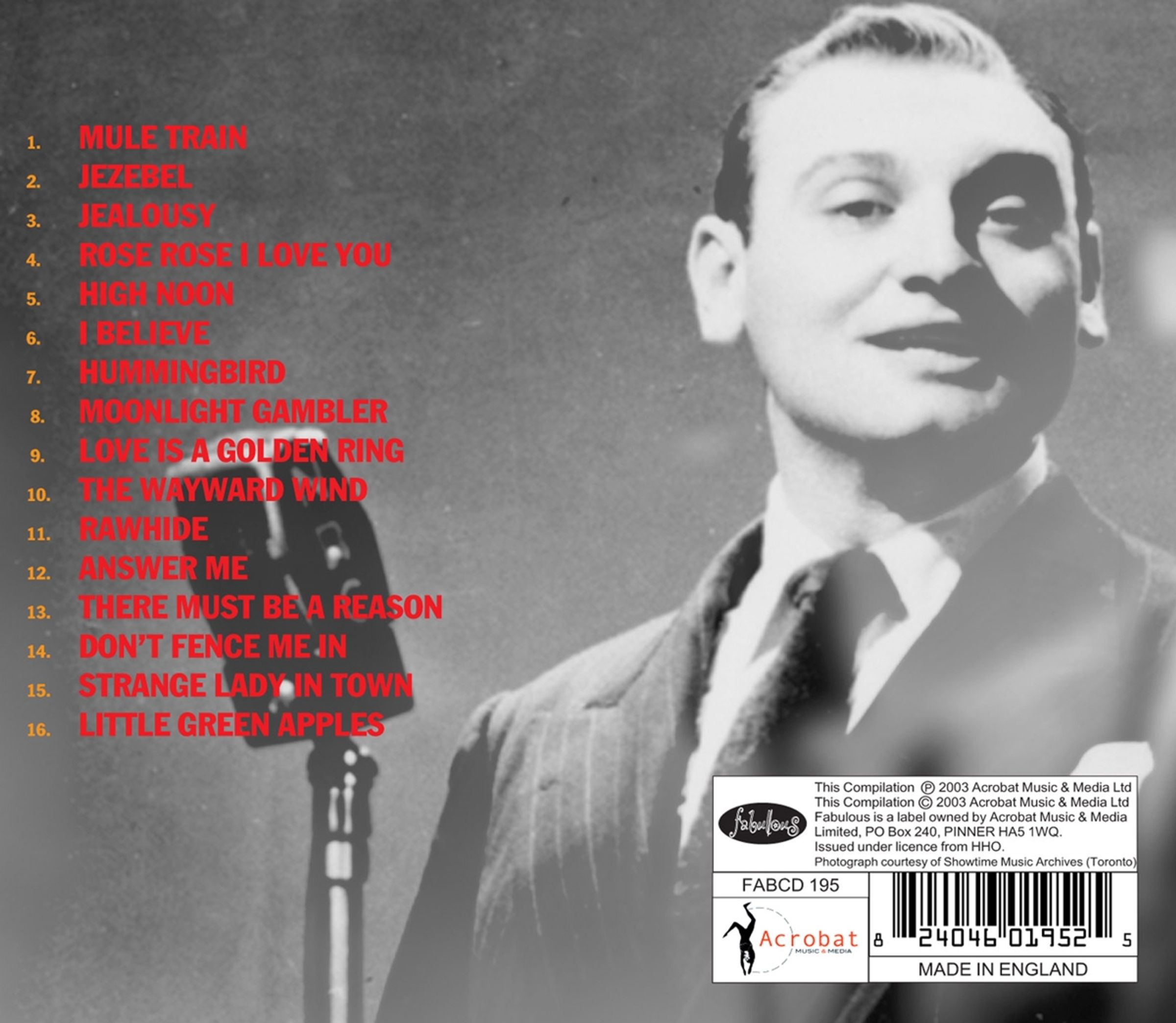 The great Frankie Laine who turned 90 in 2003 still performs for his many fans around the world. One of the most popular stars of the pre Rock and Roll era, Frankie is presented here with a collection of reinterpretations of his most popular numbers and some newer songs like Jimmy Webb’s classic ,”Little Green Apples”.