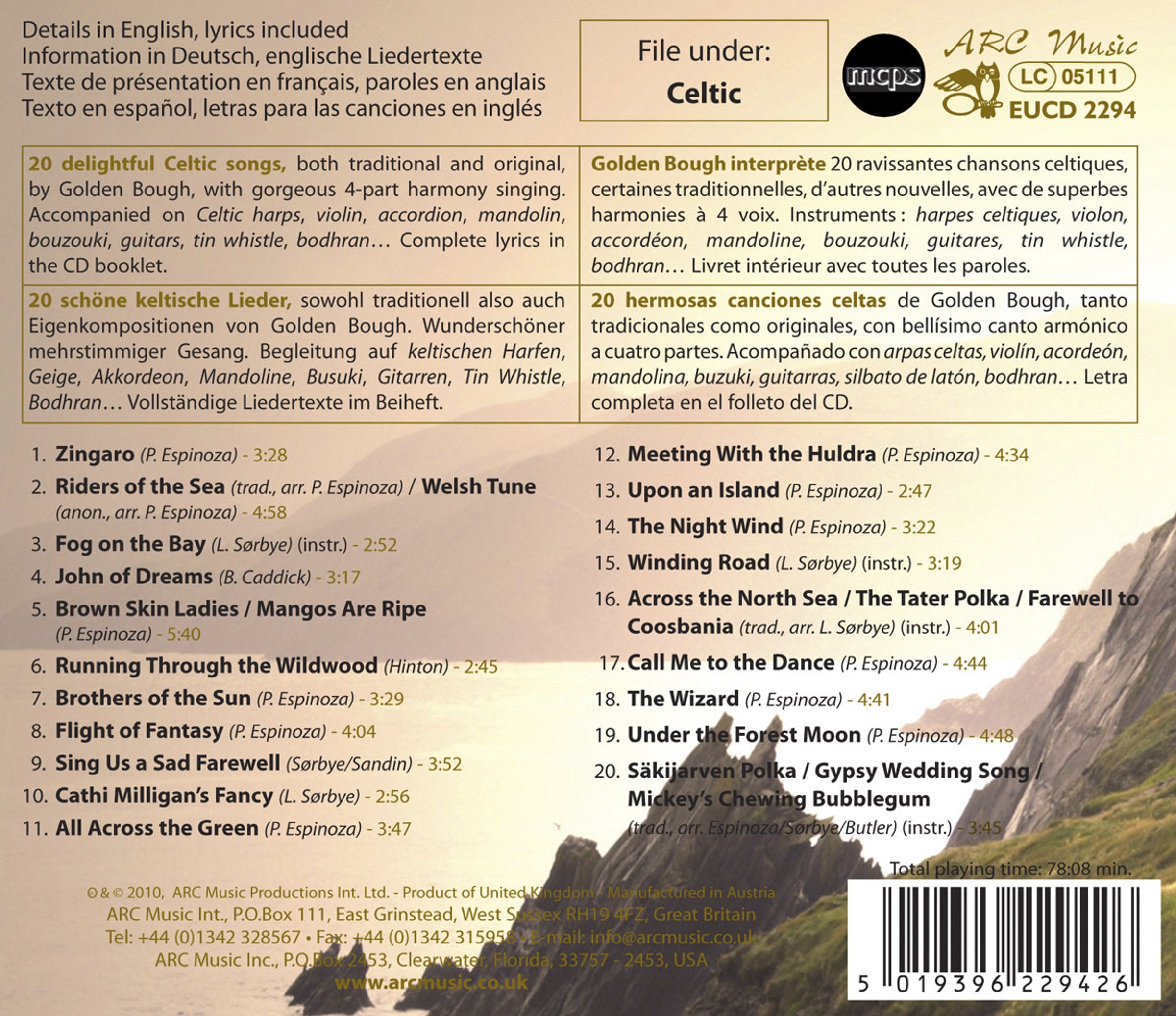 Begleitet von keltischen Harfen, Violine, Akkordeon, Mandoline, Bouzouki, Gitarre, Blechflöte und Bodhrans.