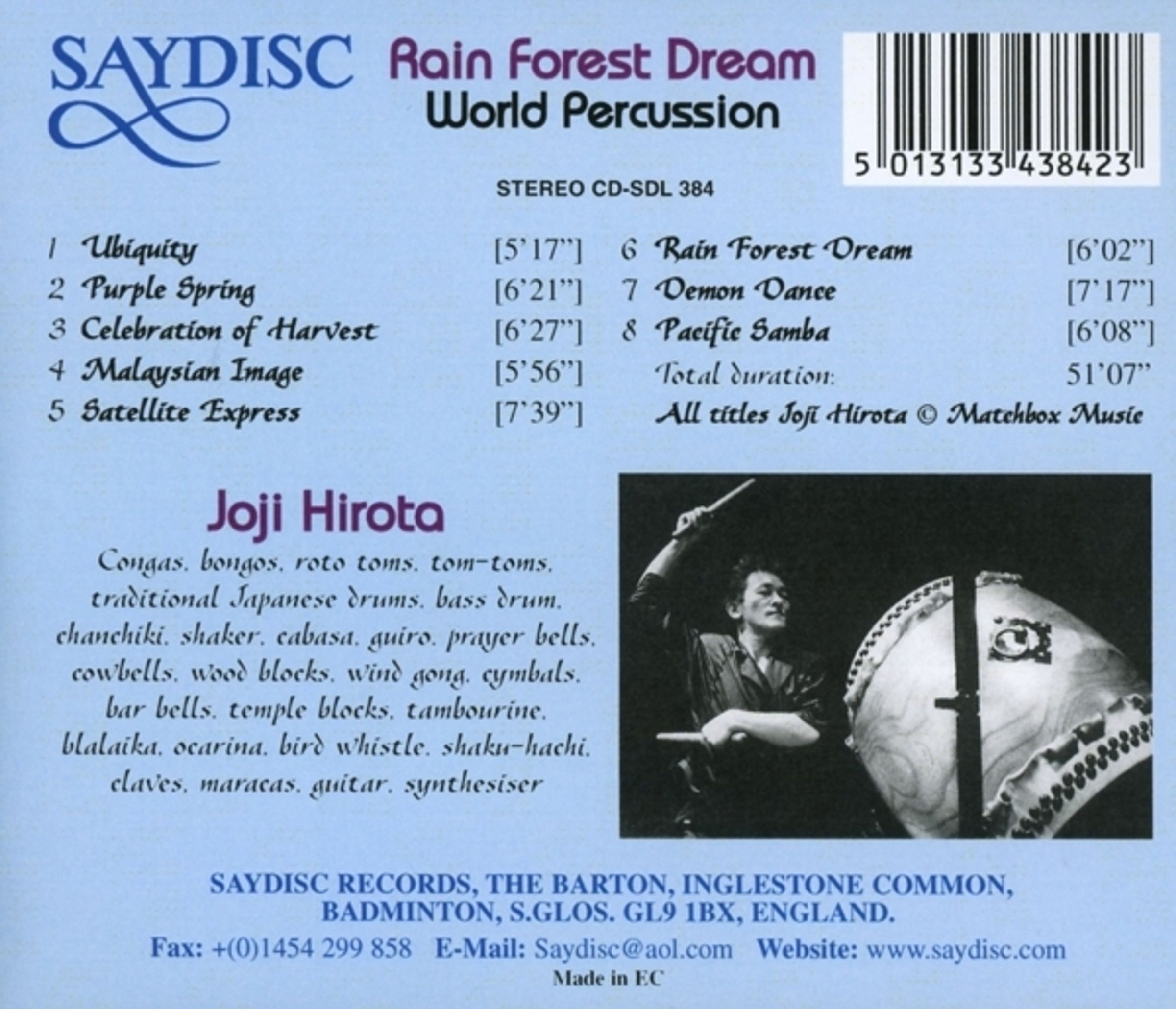 Der bekannte außergewöhnliche japanische Perkussionist Joji Hirota spielt traditionelle japanische, afrikanische, lateinamerikanische und andere exotische Schlaginstrumente und schafft so eine Mischung aus Musik, die Einflüsse aus vielen Zeiten und Kulturen vereint, aber gleichzeitig ein sehr persönliches und originelles musikalisches Statement darstellt.