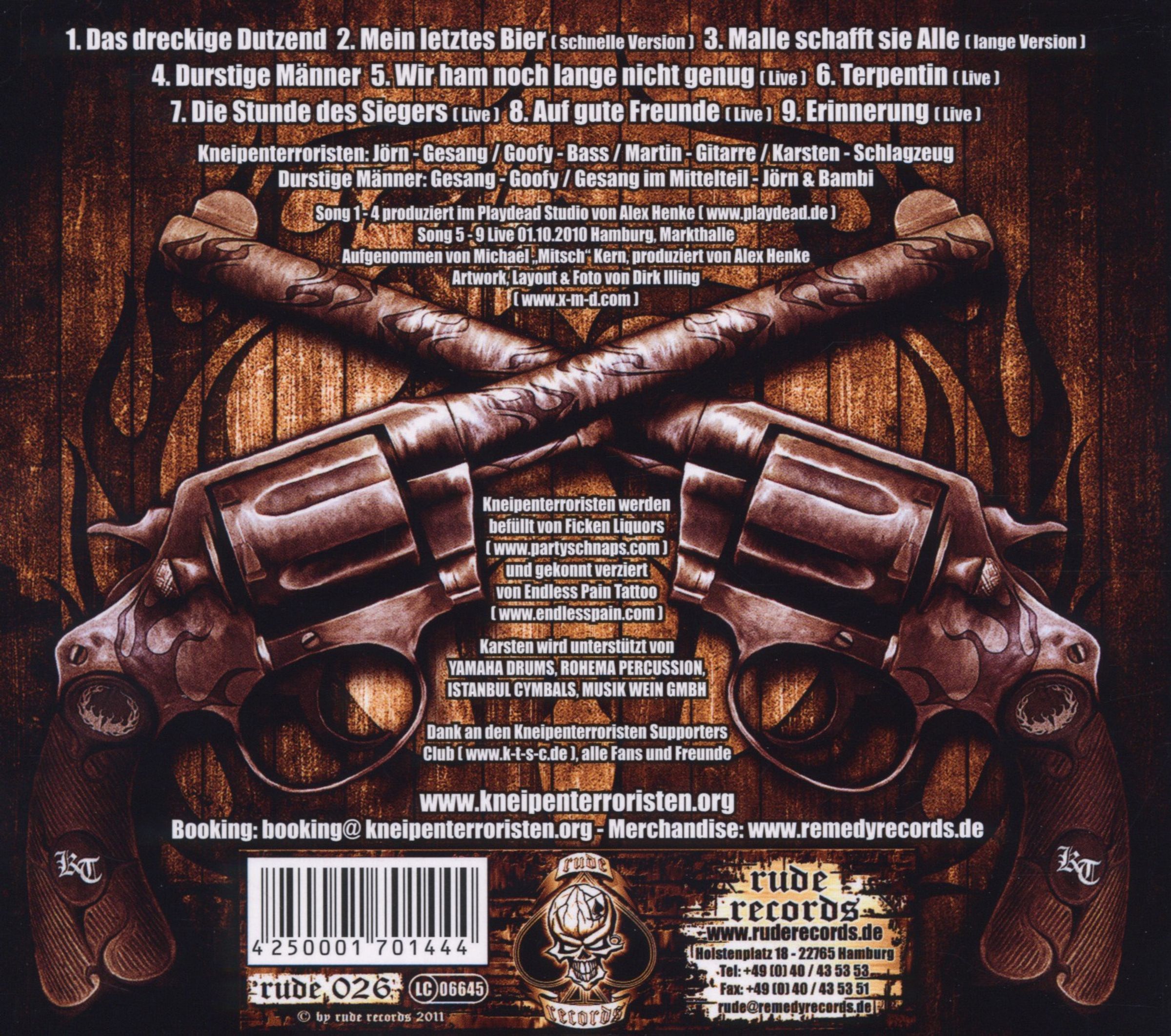 Die Kneipenterroristen setzen mit ’Das dreckige Dutzend’ das sehr erfolgreiche Konzept einer limitierten Digipak CD mit aufwendigem Artwork, ca. 45 Minuten Spielzeit und unveröffentlichtem Material zum Preis einer Mini CD fort, das sich schon bei der ’Wir fahr`n ans Kap’ CD mehr als bewährt hat und von den Fans begeistert aufgenommen wurde.