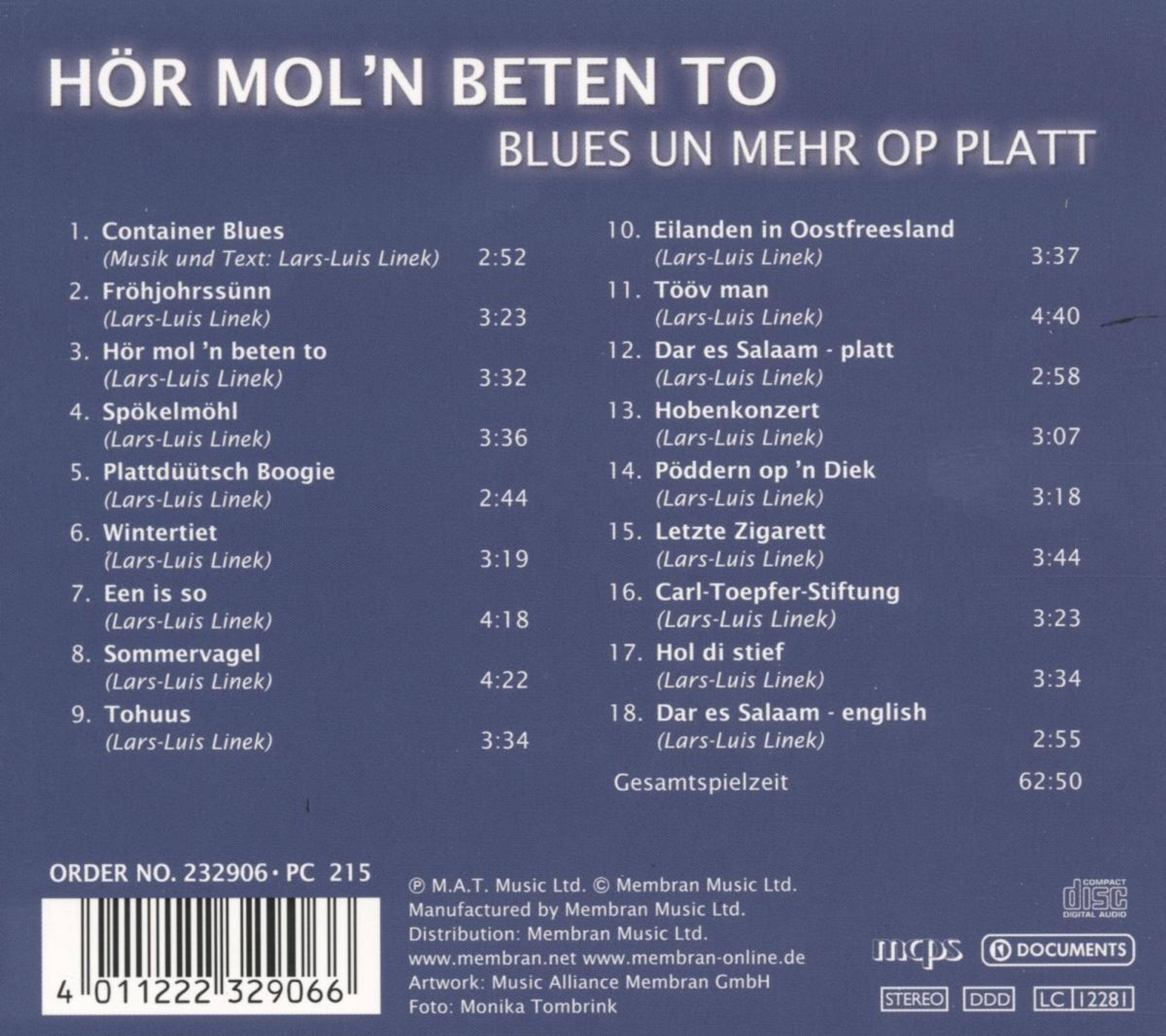 Lars-Luis Linek: Hör mol'n beten to: Blues op platt auf CD