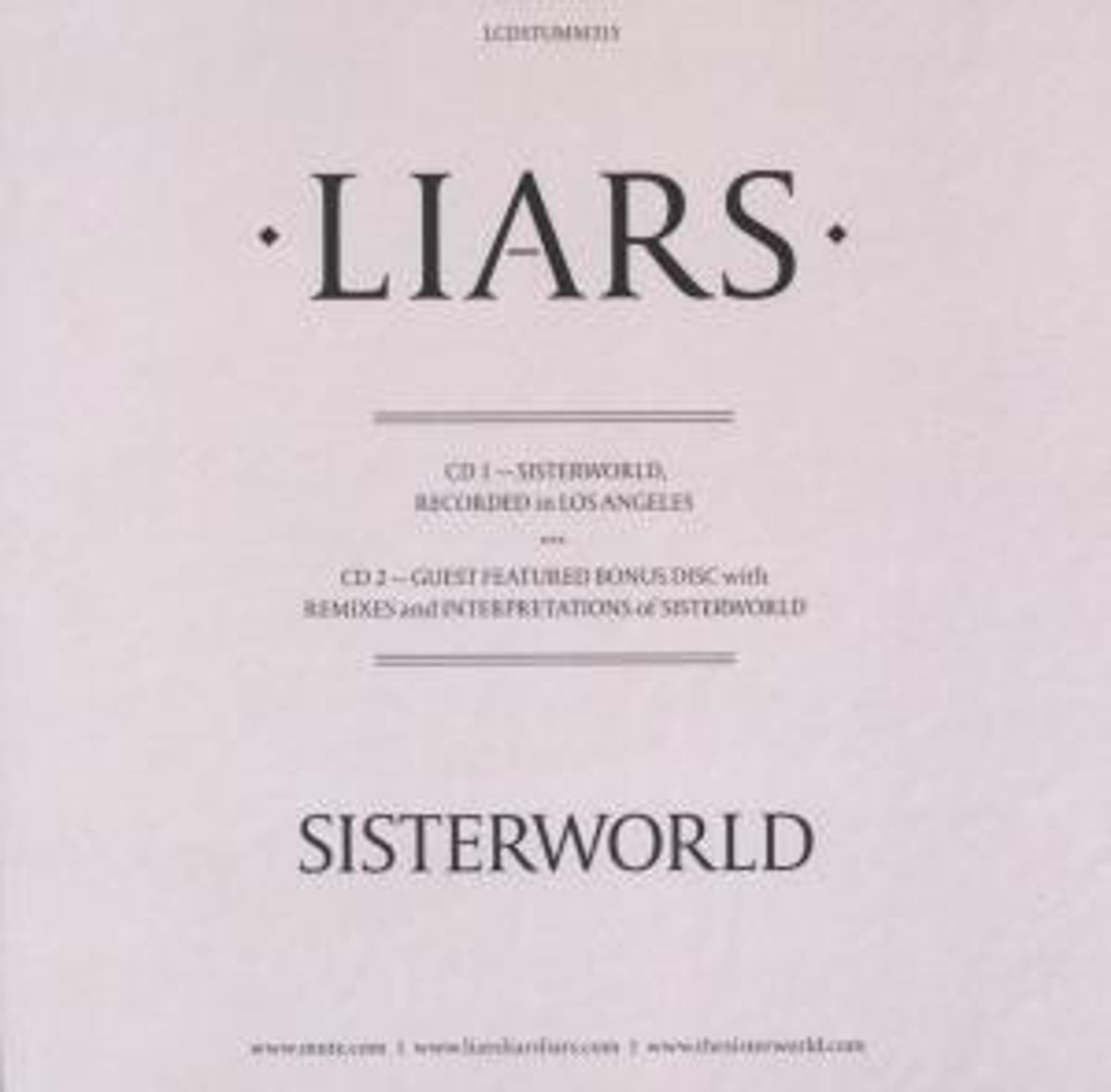 Die Liars kündigen die Veröffentlichung ihres fünften Studioalbums, "Sisterworld", für den 05.03.2010 an. "Sisterworld" ist der Nachfolger des selbstbetitelten Albums "Liars" (2007) und wurde in Los Angeles von Liars und Tom Biller (Kanye West, Beck, Where The Wild Things Are / Eternal Sunshine Of The Spotless Mind soundtracks) geschrieben. "Sisterworld" ist seit "They Were Wrong, So We Drowned" (2004) das erste Liars-Album, das in den USA aufgenommen wurde. Es reflektiert die Erfahrungen, die Angus Andrew, Aaron Hemphill und Julian Gross in der Subkultur von Los Angeles gemacht haben, in der sich so viele verschiedenen Menschen eingerichtet haben, die von Los Angeles angezogen wurden um dort ihr Glück zu suchen. "Sisterworld" ist ein ganz eigenes Liars-Album, ohne hörbare Einflüsse und sehr weit weg von den oft falschen Versprechungen und zerbrochenen Träumen von Los Angeles. Auf "Sisterworld" untersucht Liars die Undergroundkultur zu erkunden, die sich in der Stadt gebildet hat um dem Verlust der eigenen Identität in der oberflächlichen Gesellschaft von Los Angeles entgegenzuwirken. Die Band erklärt dazu, "Uns interessieren die alternativen Lebensräume die sich die Leute in Los Angeles aufgebaut haben um ihre eigene Identität in dieser Stadt zu wahren. Lebensräume, in denen Outcasts und Einzelgänger eine verdrehte Beziehung zum Rest der Gesellschaft führen."