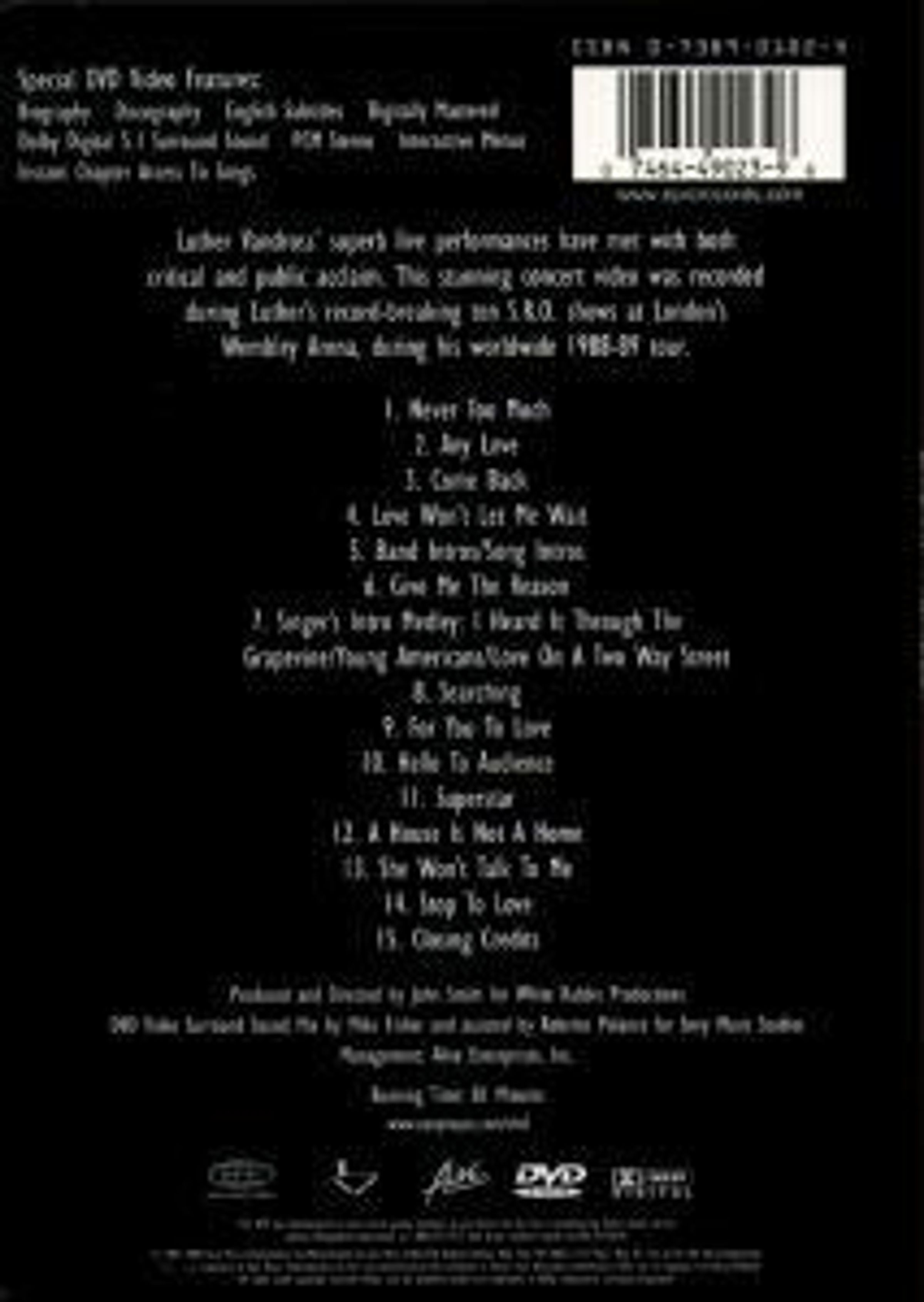 Luther Vandross' superb live performances have met with both critical and public acclaim. This stunning concert video was recored during Luther's record-breaking ten S. R.O. shows at London's Wembley Arena, during his worldwide 1988-89 tour.