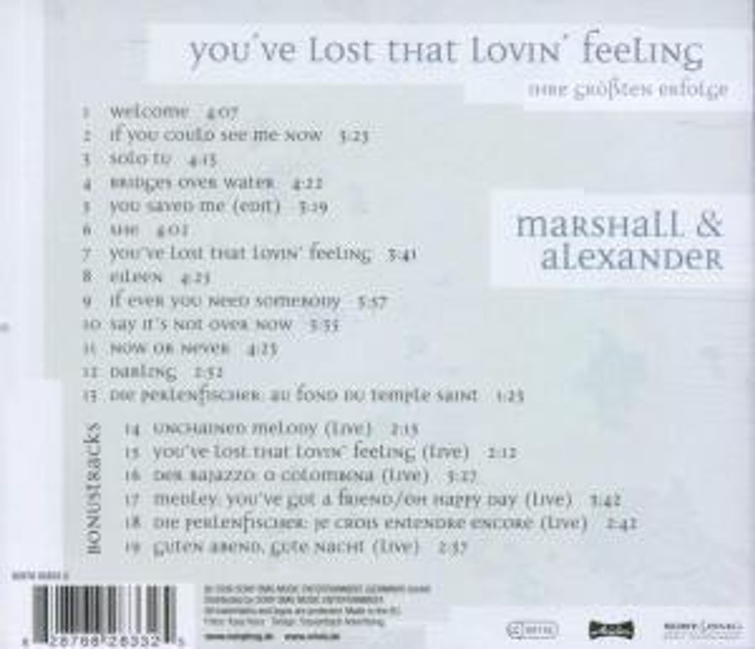 Marshall & Alexander: You've Lost That Lovin' Feeling - Ihre größten Erfolge auf CD