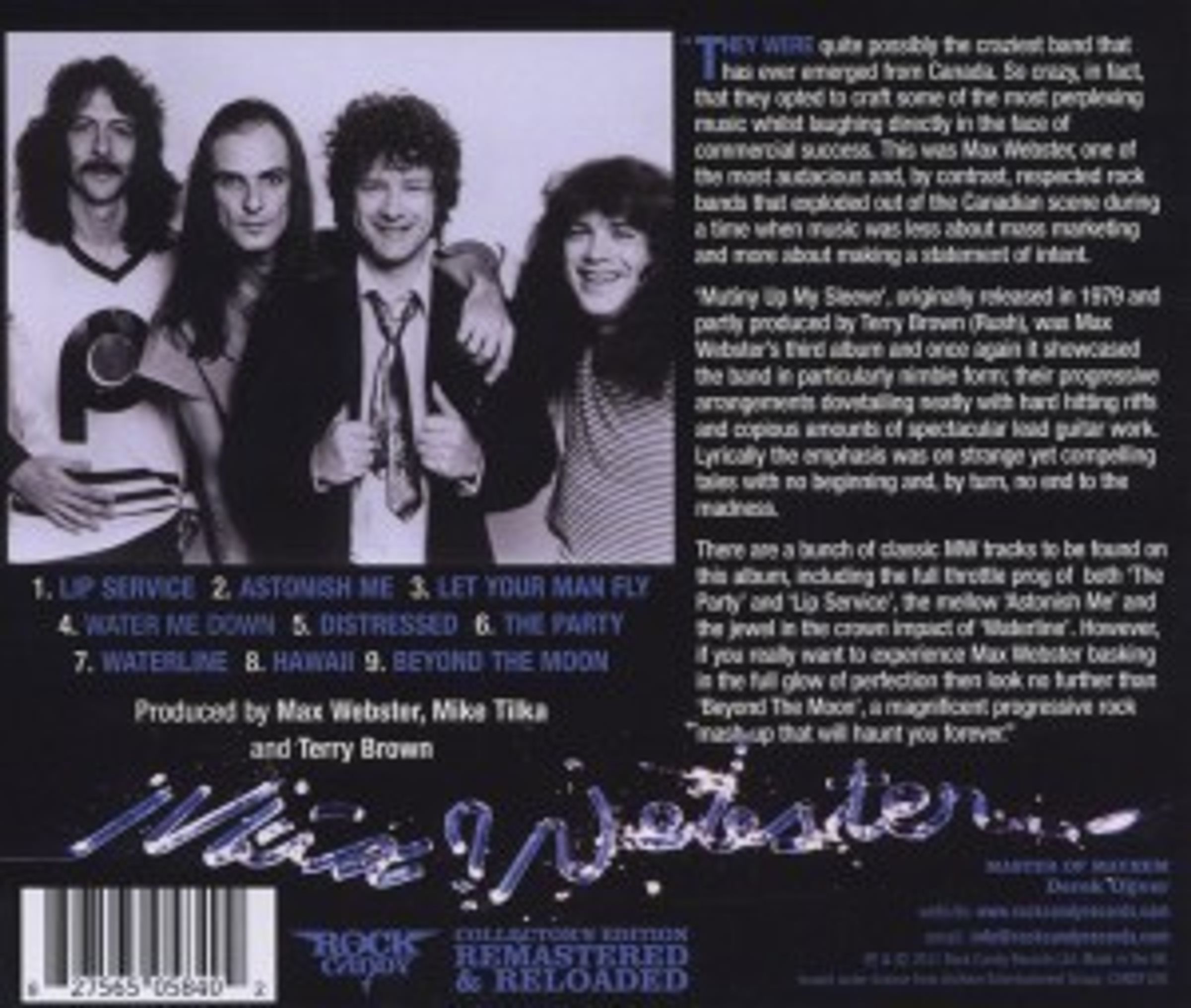 ‘MUTINY UP My Sleeve, originally released in 1979 and partly produced by Terry Brown (Rush), was Max Webster’s third album and once again it showcased the band in particularly nimble form; the progressive arrangements dovetail neatly, with hard hitting riffs and much spectacular lead guitar work. Lyrically the emphasis is on strange yet compelling tales with no beginning and, by turn, no end to their madness.
