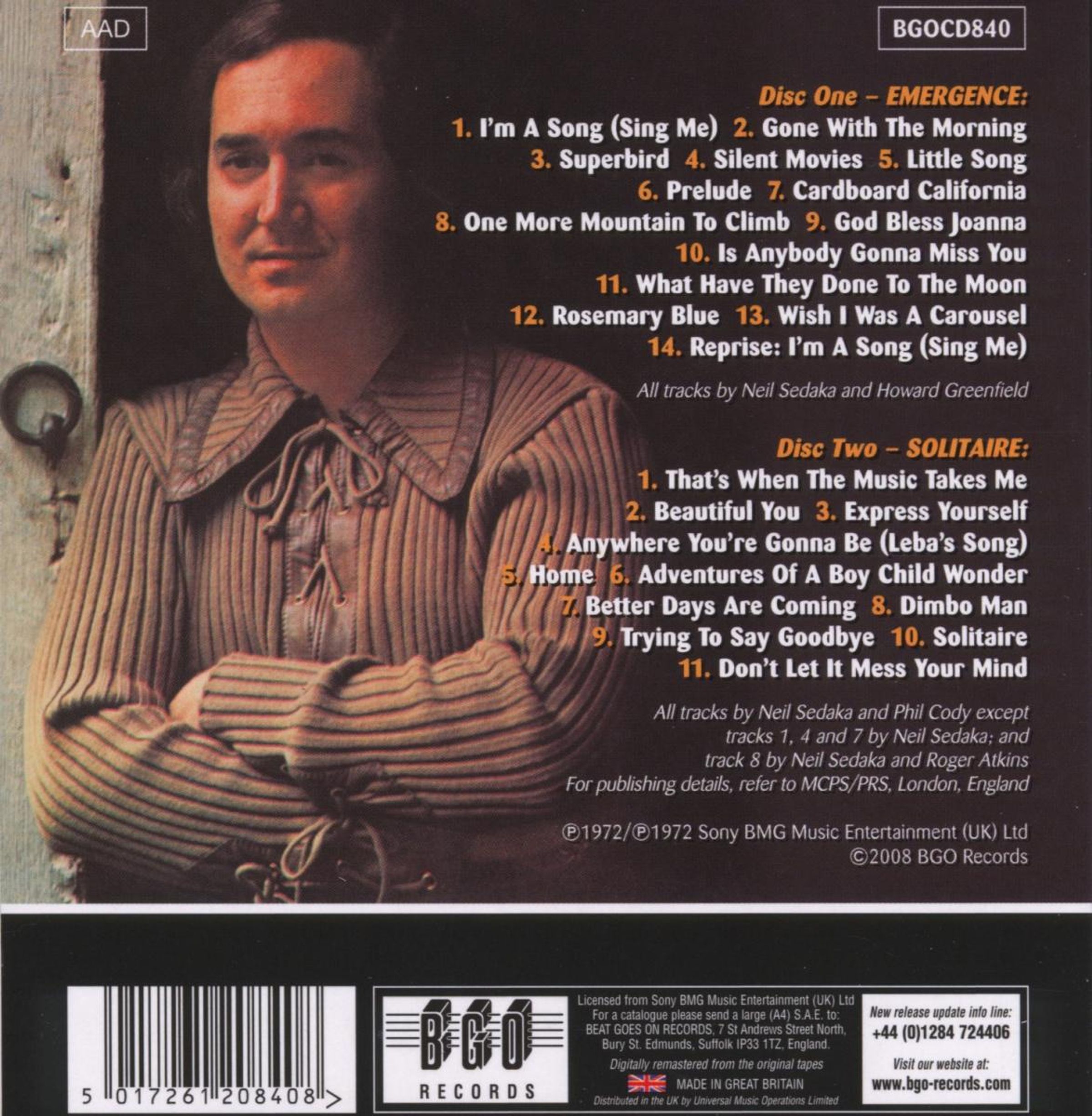 Neil Sedaka: Emergence / Solitaire auf 2 CDs