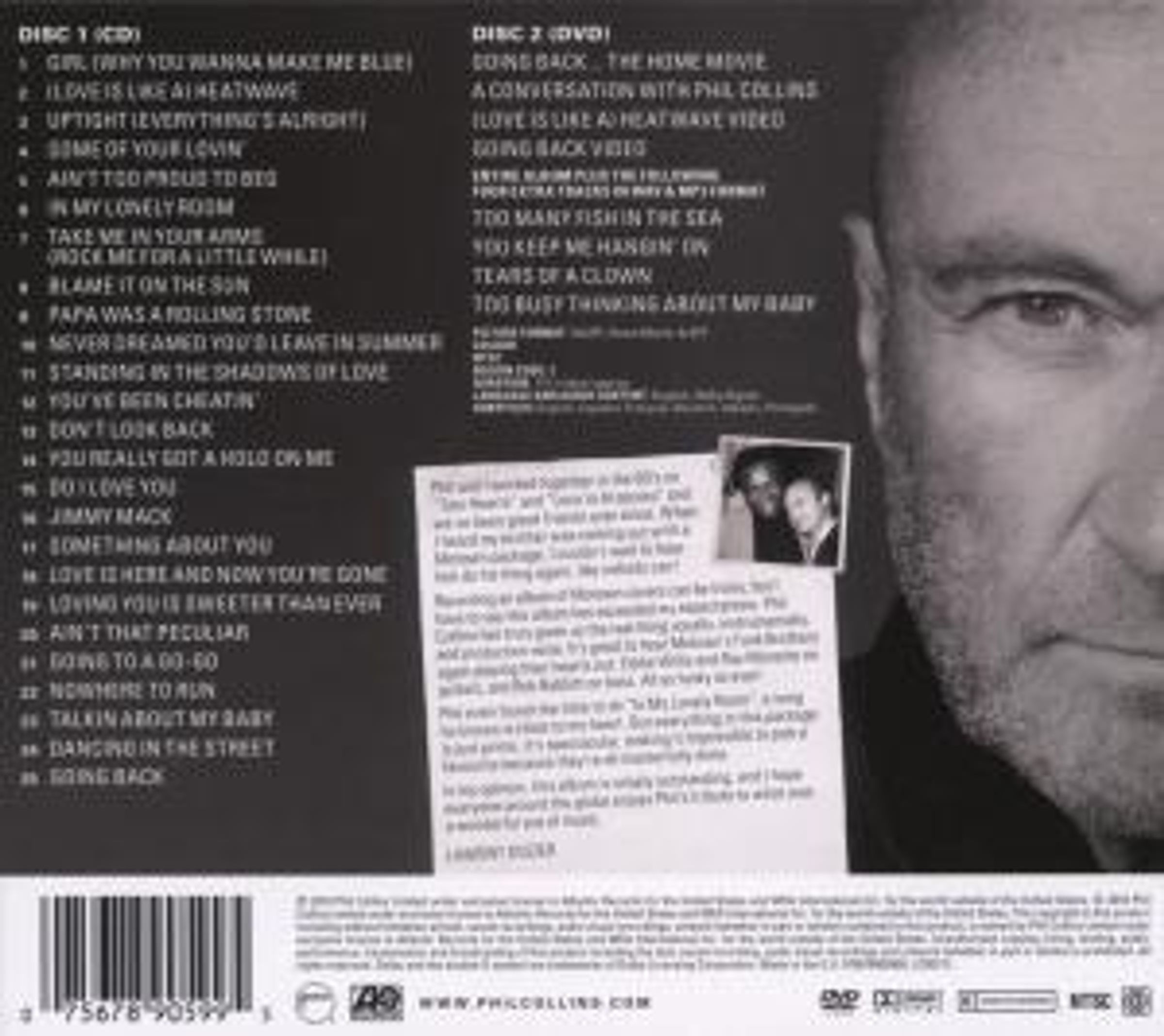 Phil Collins hat im Laufe seiner 30-jährigen Karriere immer wieder Songs neu aufgenommen, die sein musikalisches Erwachsenwerden beeinflusst haben. Darunter solche Ohrwürmer wie „You Can’t Hurry Love“, „A Groovy Kind of Love“, „Tomorrow Never Knows“ und „True Colours“. Noch nie hat der am 31. Januar 1951 in London geborene Gentleman ein Projekt verwirklicht, in dem er sich ausnahmslos mit den Kompositionen und Songs von anderen Songschreibern und Interpreten beschäftigt hat. „Going Back“ ist der emotionale Rückblick über die eigene Schulter, der jedoch von den eigenen Erfahrungen aus den vergangenen Jahren gefärbt ist.