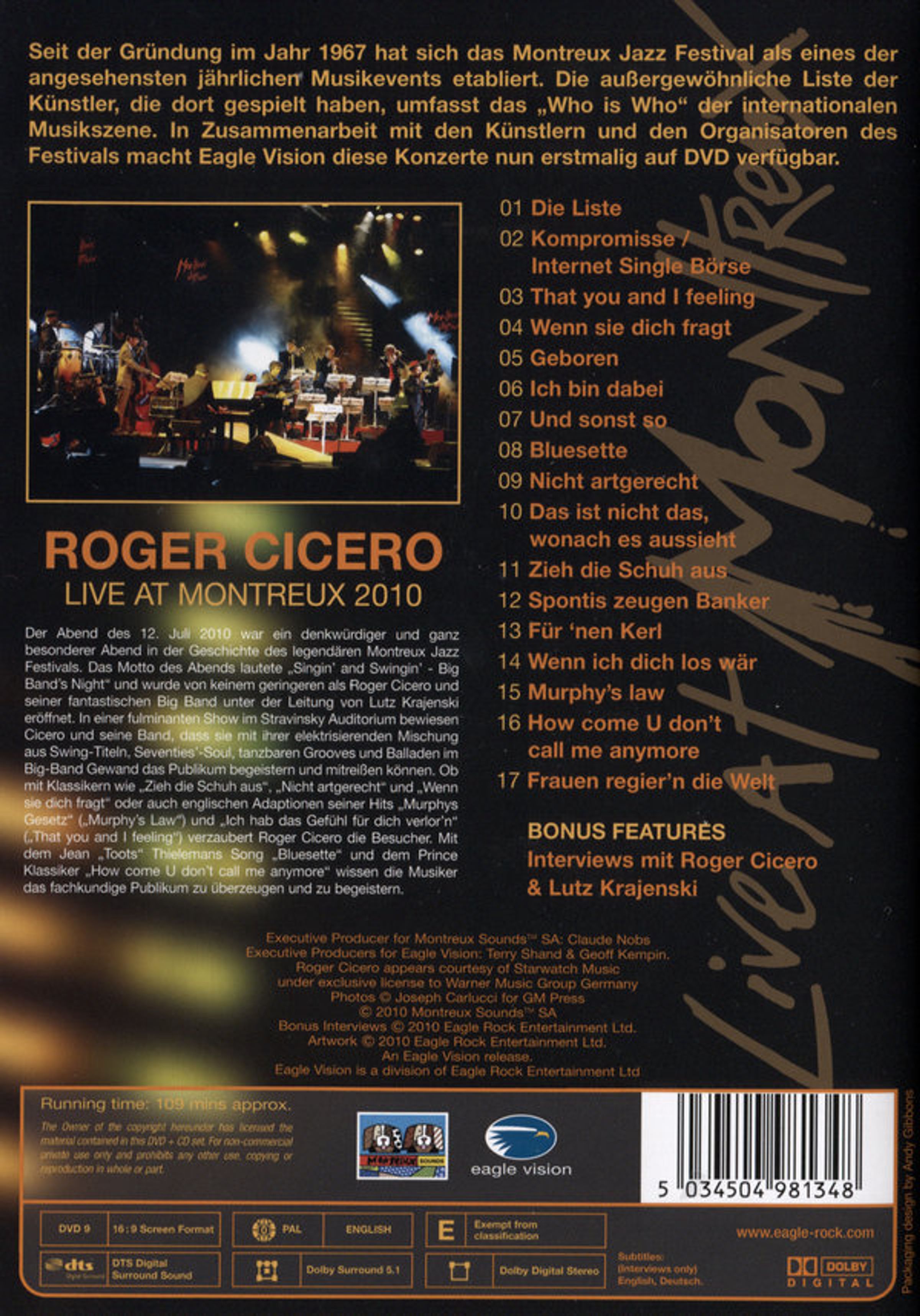 ,,Papa Eugen Cicero wär sicher stolz gewesen, wenn er Sohnemanns Einladung zum Jazzfestival in Montreux noch miterlebt hätte. lm Sommer 2010 hatte Roger Cicero dort im Rahmen der Big-Band-Nacht das Publikum mit Hits wie ,,Frauen regier'n die Welt", englischen Adaptionen eigener Songs und Fremdtiteln wie Toots Thietemans,,Bluesette" im Nu auf seiner Seite." (stereo, 01 / 2011)