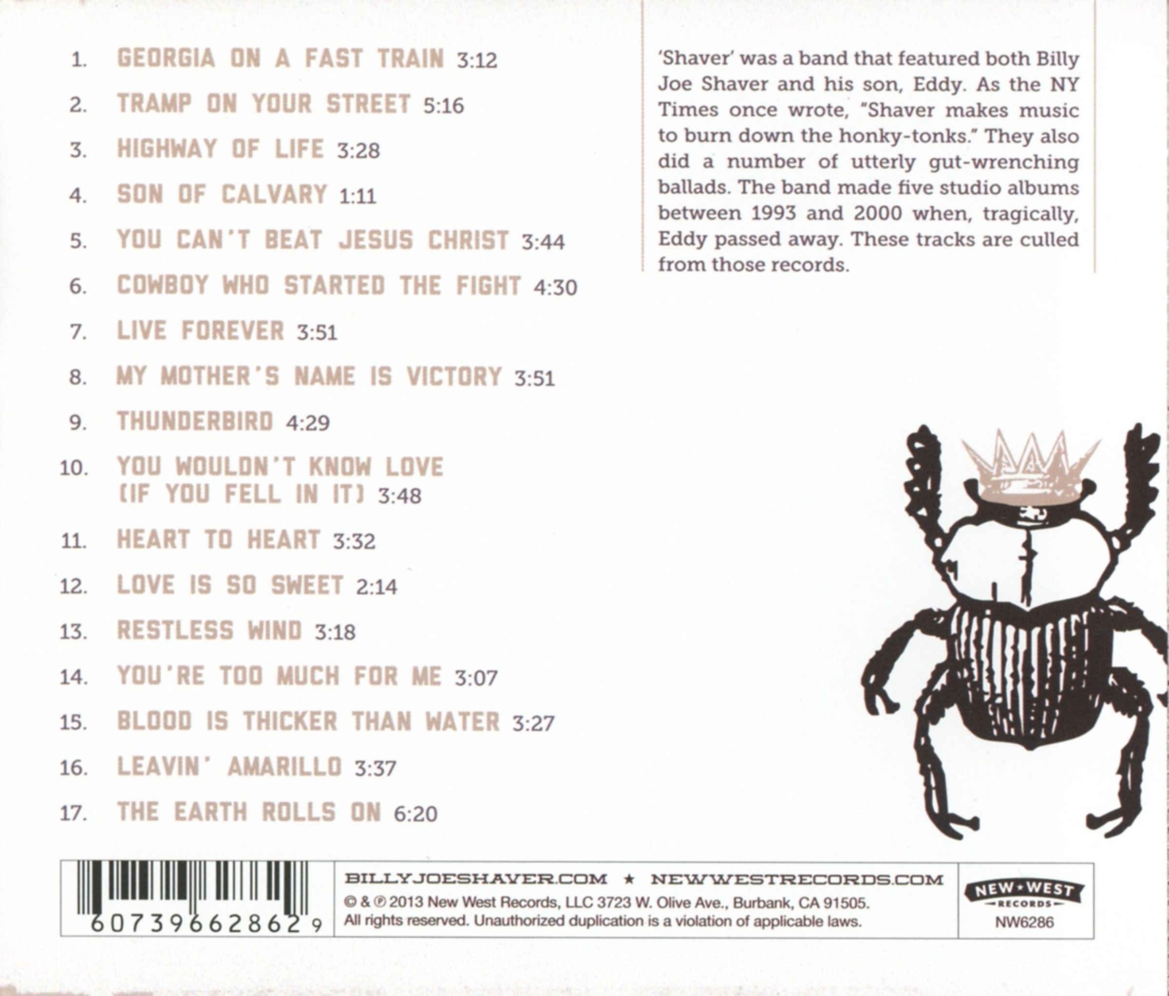 Diese band bestand aus Billy Joe Shaver und seinem Sohn Eddy. Die New York Times schrieb einst: "Shavers make music to burn down the honky-tonks." Dazu einige wunderbare Ballden, die sie auf ihren 5 Studioalben zwischen 1993 und 2000 verteilten. Bis zum tragischen Tod von Eddy.
